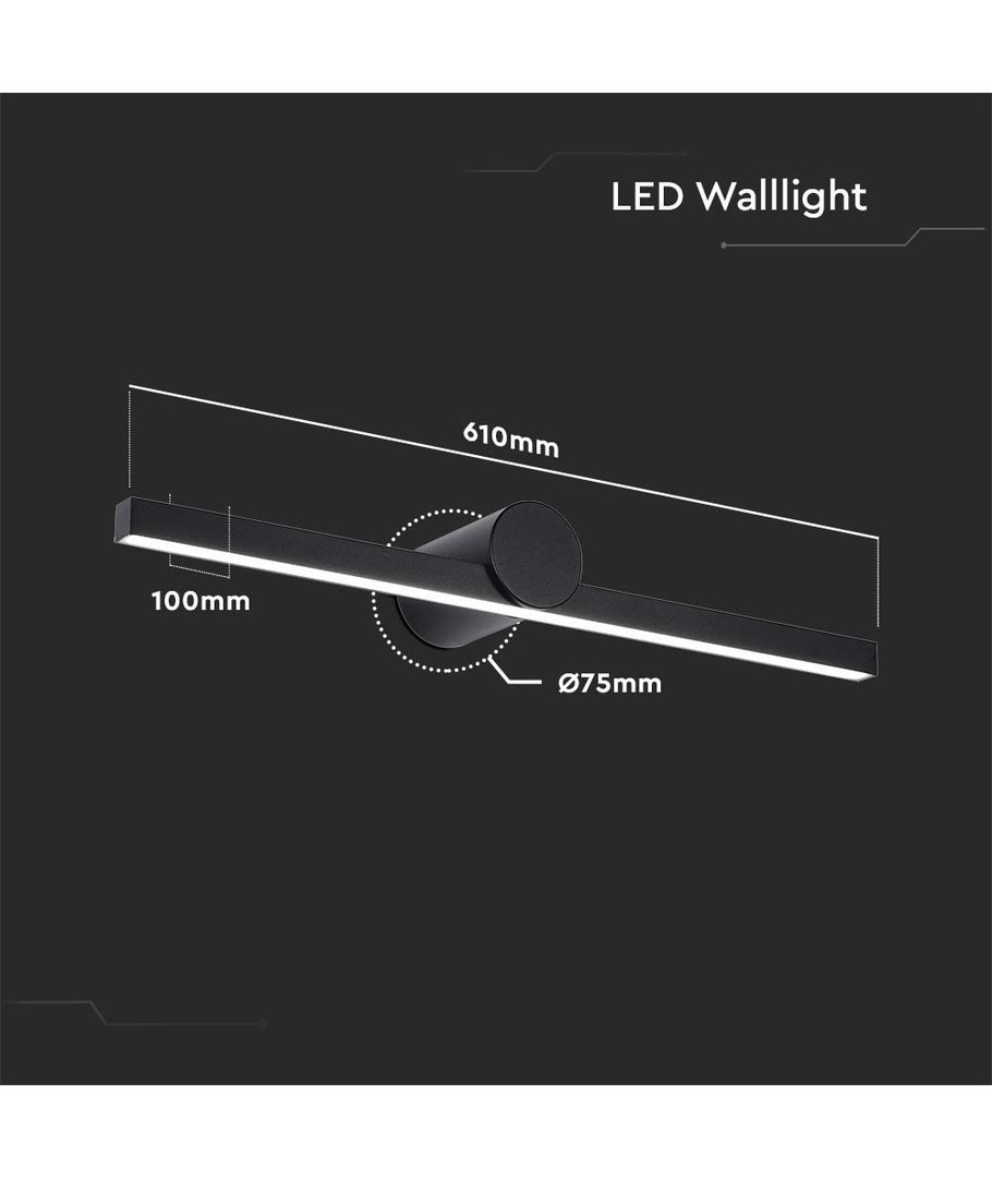 Utformad för att vara robust, med ett svart hus och dimensioner på 610 x 75 x 100 mm. Tack vare dess IP65-klassning är lampan lämplig för utomhusbruk och tål både vattenstänk och regn, vilket gör den till ett utmärkt val för utomhusmiljöer som terrasser och balkonger.
