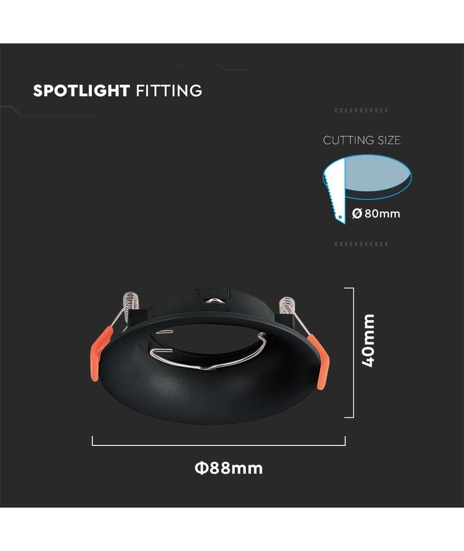 En del av den kända V-Tac Pro serien, denna lampfattning erbjuder 3 års fabriksgaranti, vilket säkerställer kvalitet och trygghet vid ditt köp. Dess mått på 88 x 40 mm tillsammans med en hålstorlek på 80 mm gör installationen enkel och problemfri.