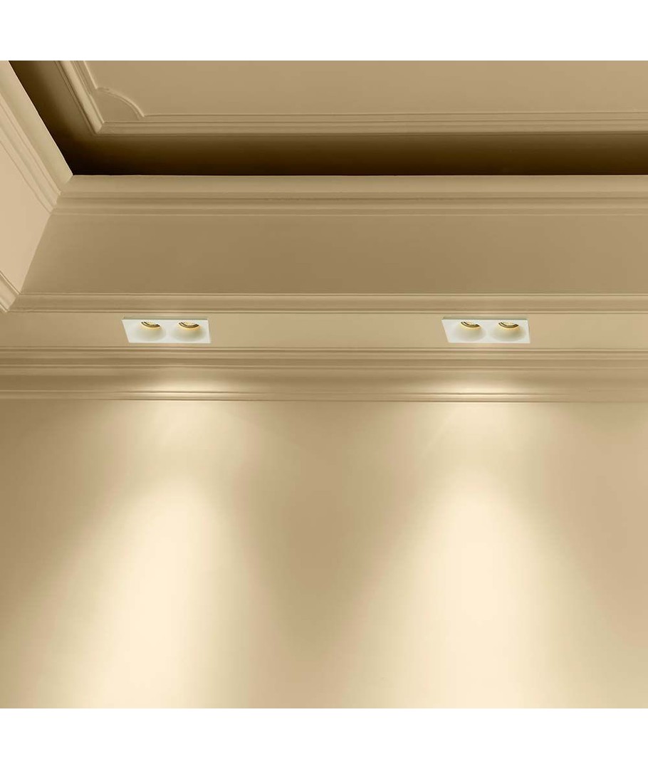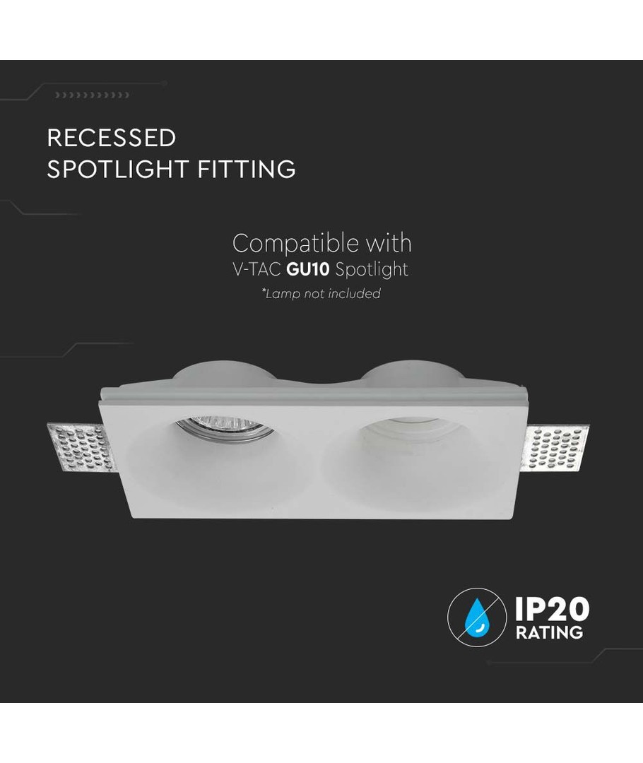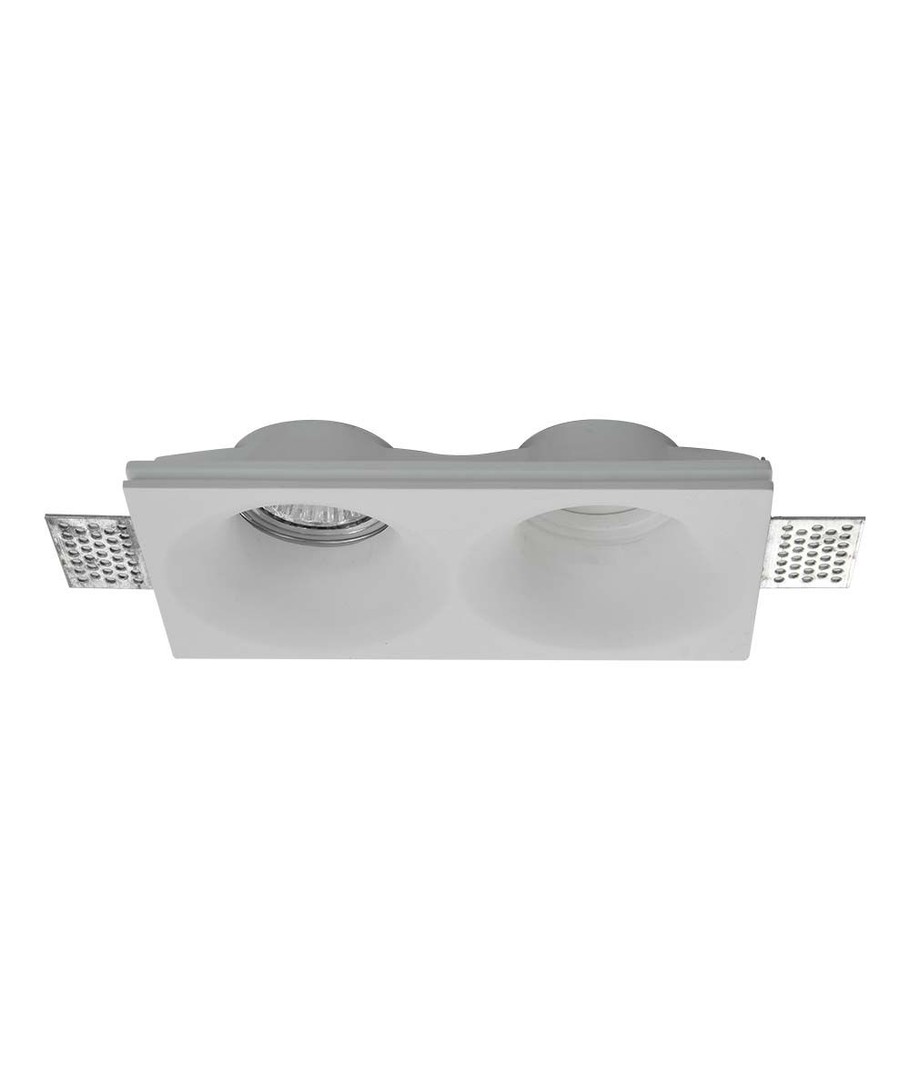 Med en dimension på 190 x 40 x 100 mm och en hålstorlek på 195x105 mm, är denna lampa både kompakt och enkel att installera. Den är utrustad med två GU10-socklar, vilket gör den idealisk för användning med många olika typer av spotlights som erbjuder ett fokuserat ljus.