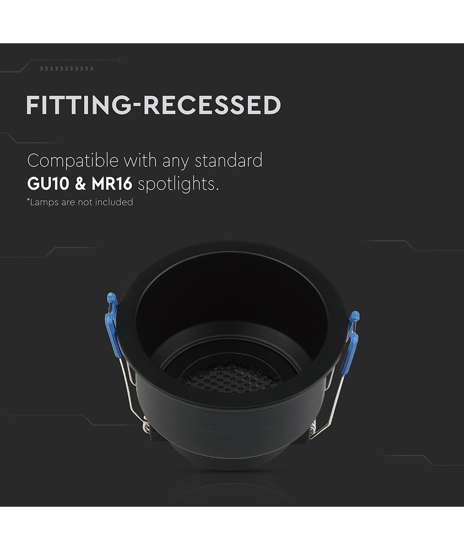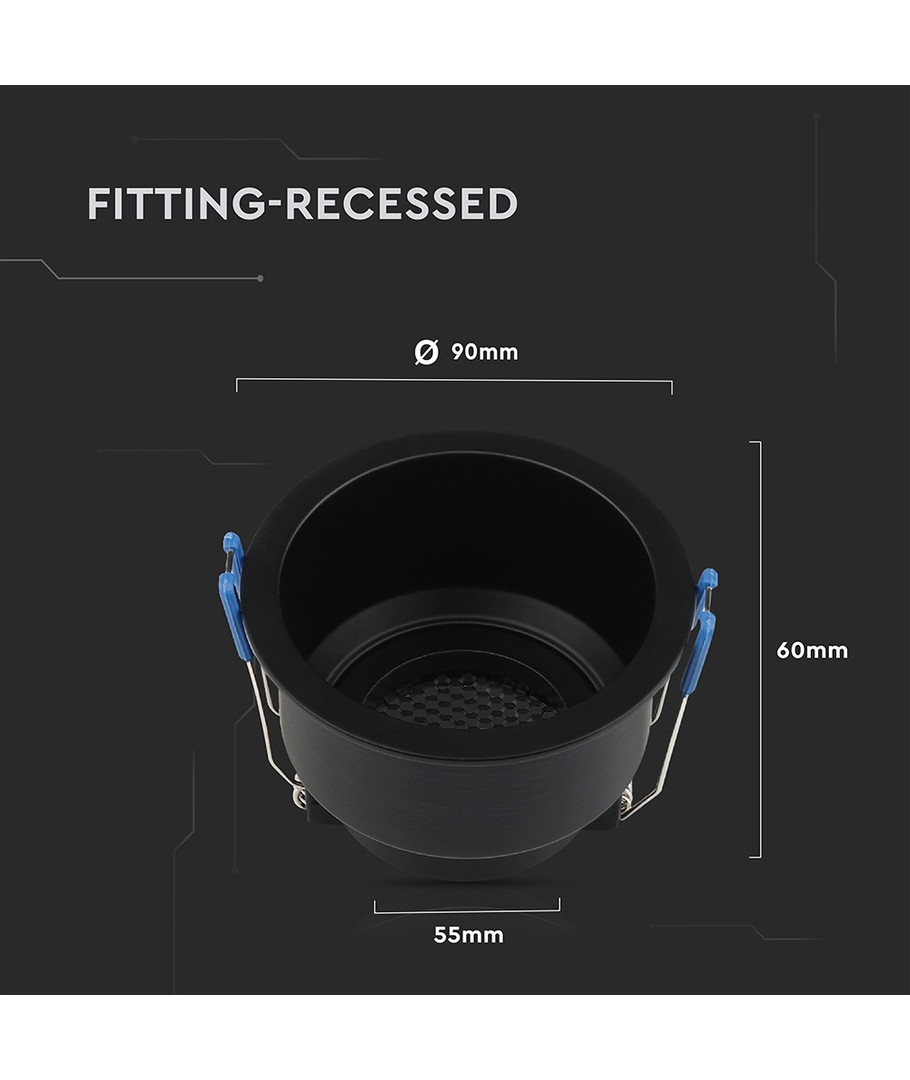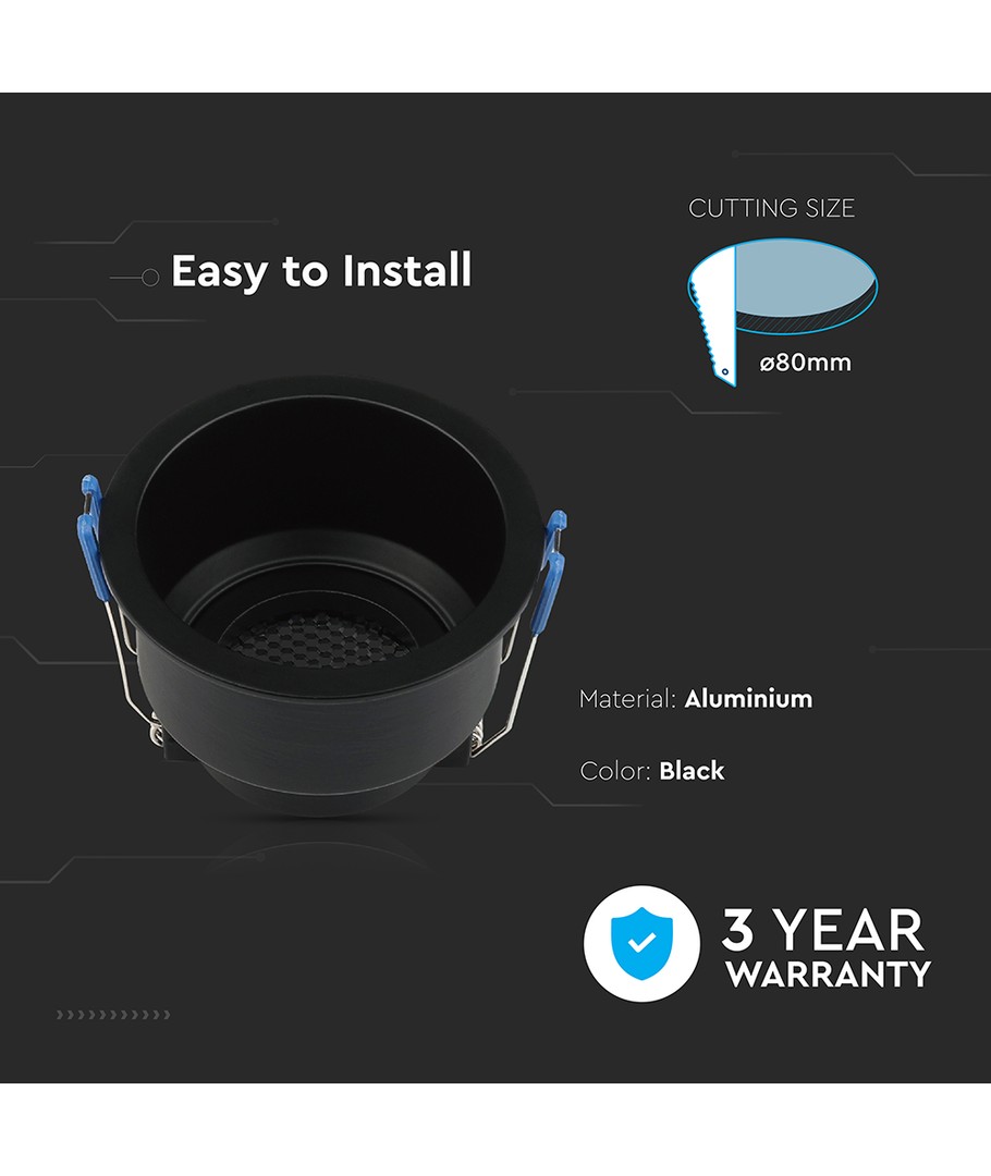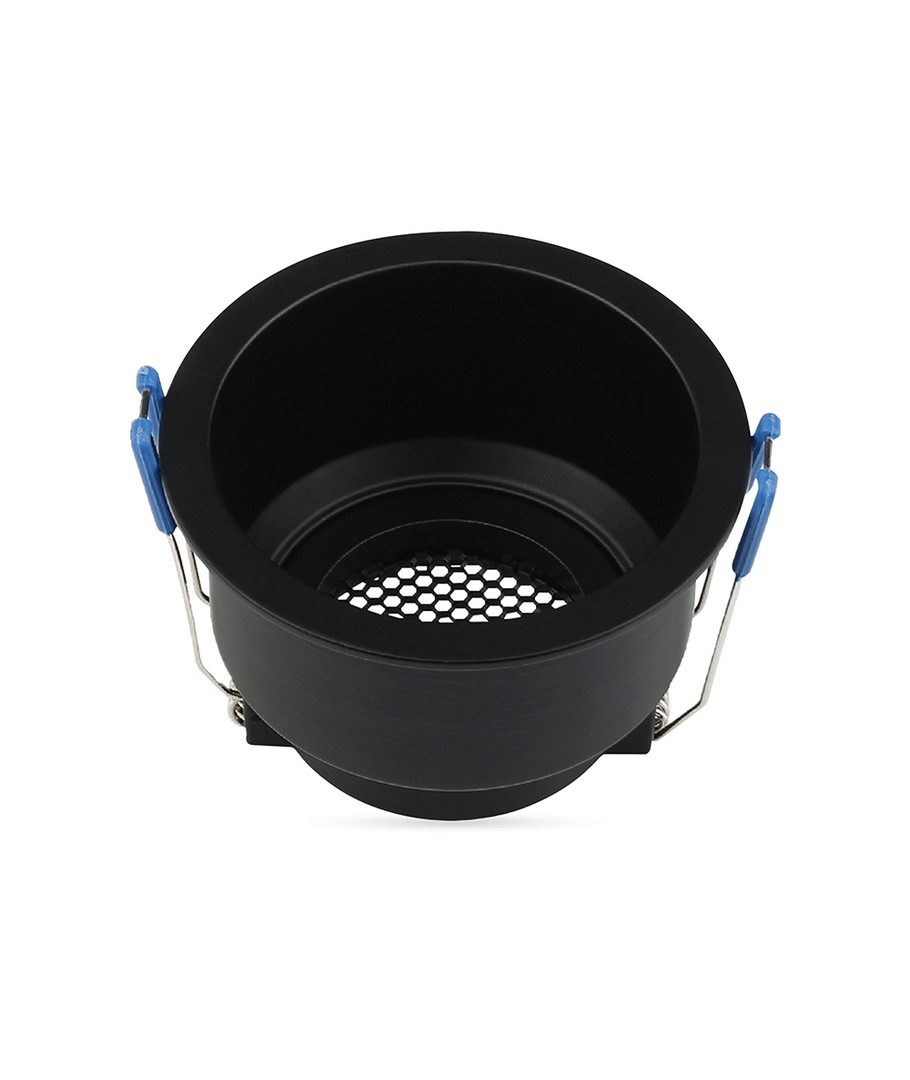 Lamphållaren är tillverkad i högkvalitativ aluminium och har en stilren svart rund form. Med dess unika honeycomb-design och djupa anti-bländningsegenskaper skapar den en behaglig och fokuserad ljusmiljö utan att orsaka ögonirritation.