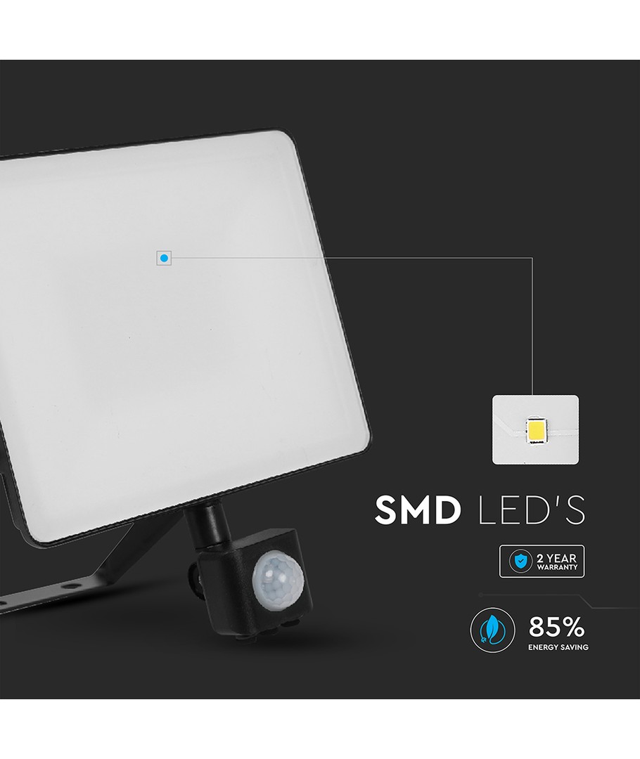 Denna kraftfulla LED projektor kombinerar effekt och användarvänlighet i ett kompakt format. Med en effekt på 50W och en ljusstyrka på 6000 lm garanteras en optimal belysning för olika utomhusmiljöer.