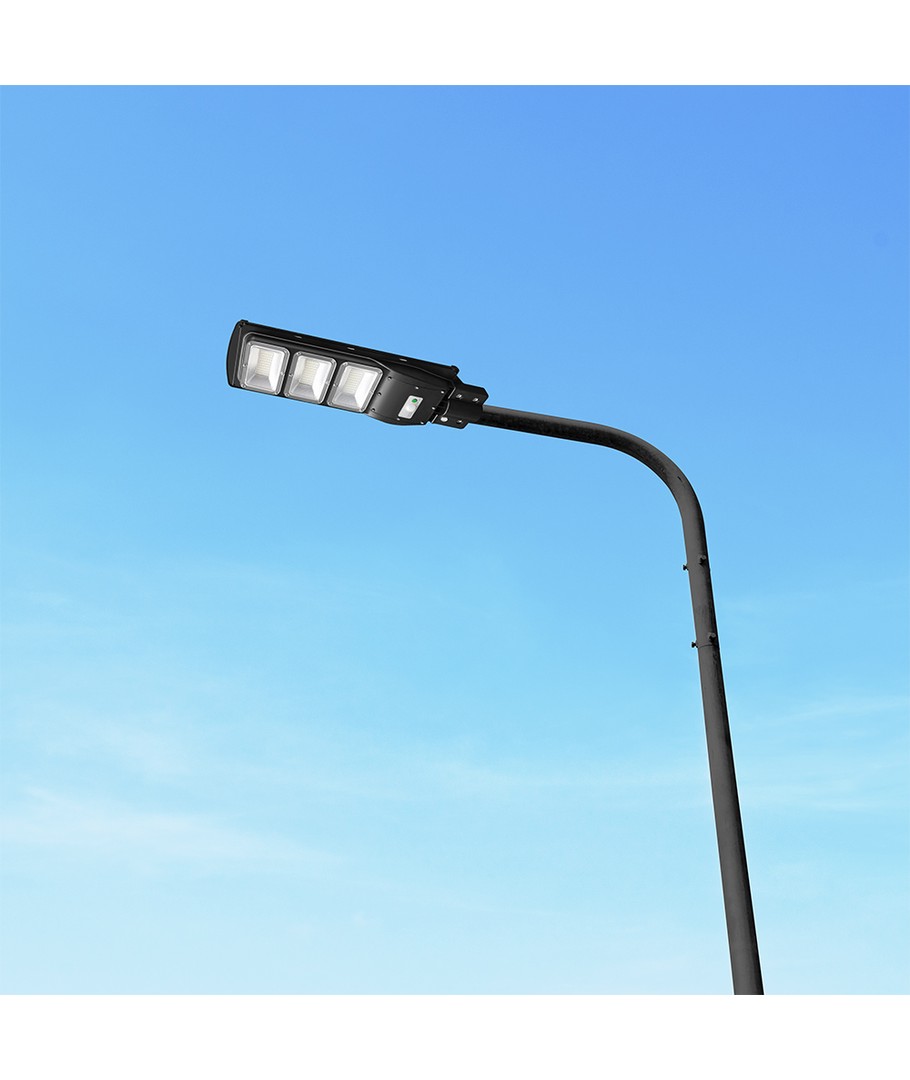 Upptäck en smart belysningslösning för dina utomhusutrymmen med denna solcellsdrivna gatubelysning i stilren svart design. Perfekt för både funktionell och dekorativ belysning.