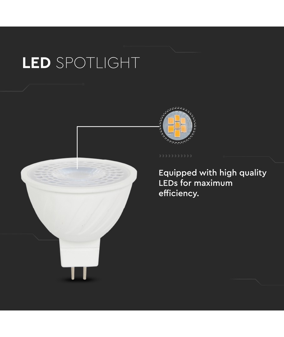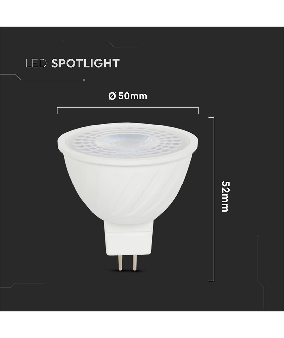 Denna spotlight är utformad för att ge effektiv belysning med låg energiförbrukning. Med en effekt på 6W och utrustad med MR16 / GU5.3 sockel är den ett miljövänligt alternativ för både hem och kontor.