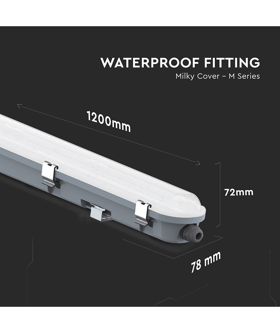 Med måtten 1200 x 72 x 78 mm är denna armatur både kompakt och kraftfull, vilket gör den idealisk för olika installationsmiljöer.