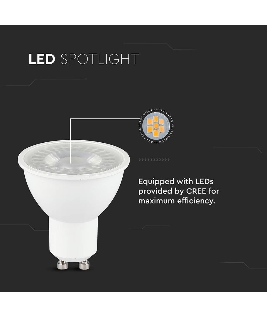 Designad för att passa moderna belysningsbehov, spotlighten erbjuder en kallvit färg på 6500K som ger ett svalt ljus med en tydlig blåaktig nyans. Perfekt för miljöer som kräver ett starkt och distinkt ljus, såsom lackeringsstudior, akvarium eller för specifik dekoration.
