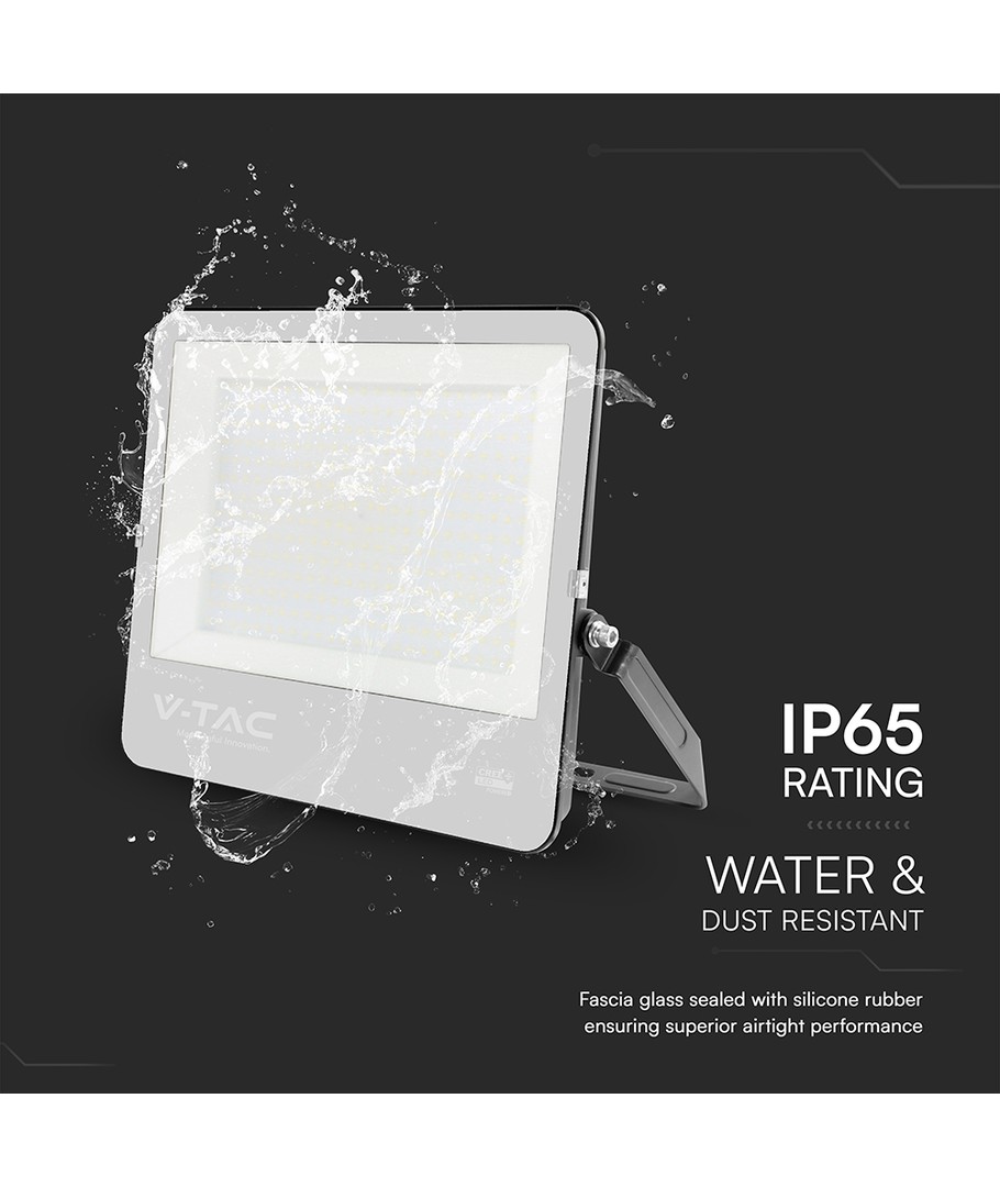 Produkten är byggd för att klara tuffa väderförhållanden med sin IP65-klassificering. Denna projektör klarar både vattenstänk och regn, vilket gör den idealisk för utomhusinstallationer.