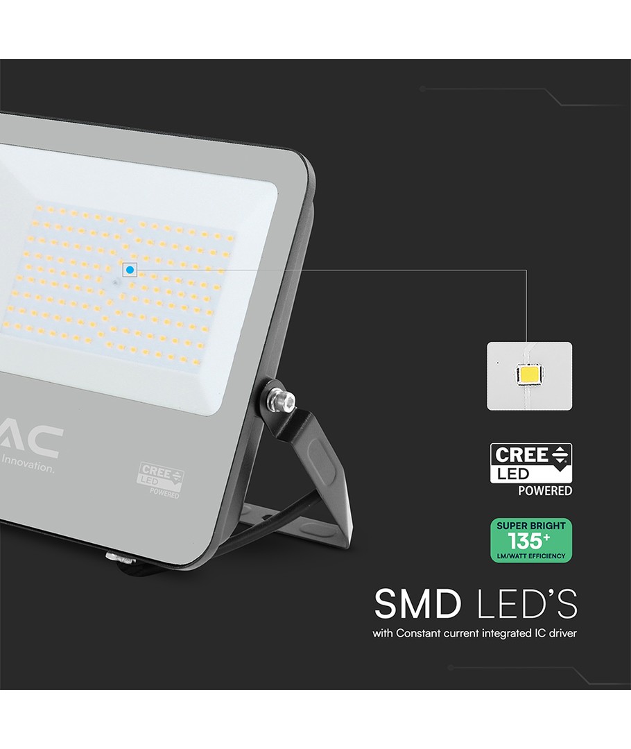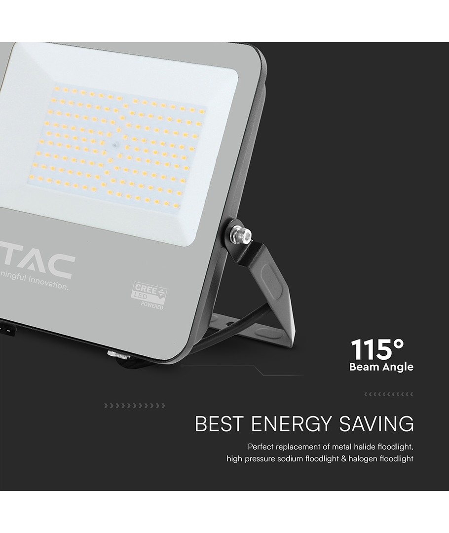 Denna LED-projektör ger en imponerande ljusstyrka på 13500 lm tack vare sin kraftfulla 100W effekt och är utrustad med ett Cree-chip som säkerställer långvarig och pålitlig prestanda. Med en bred spridning på 115 grader garanterar projektören en jämn fördelning av ljuset i det område den belyser.