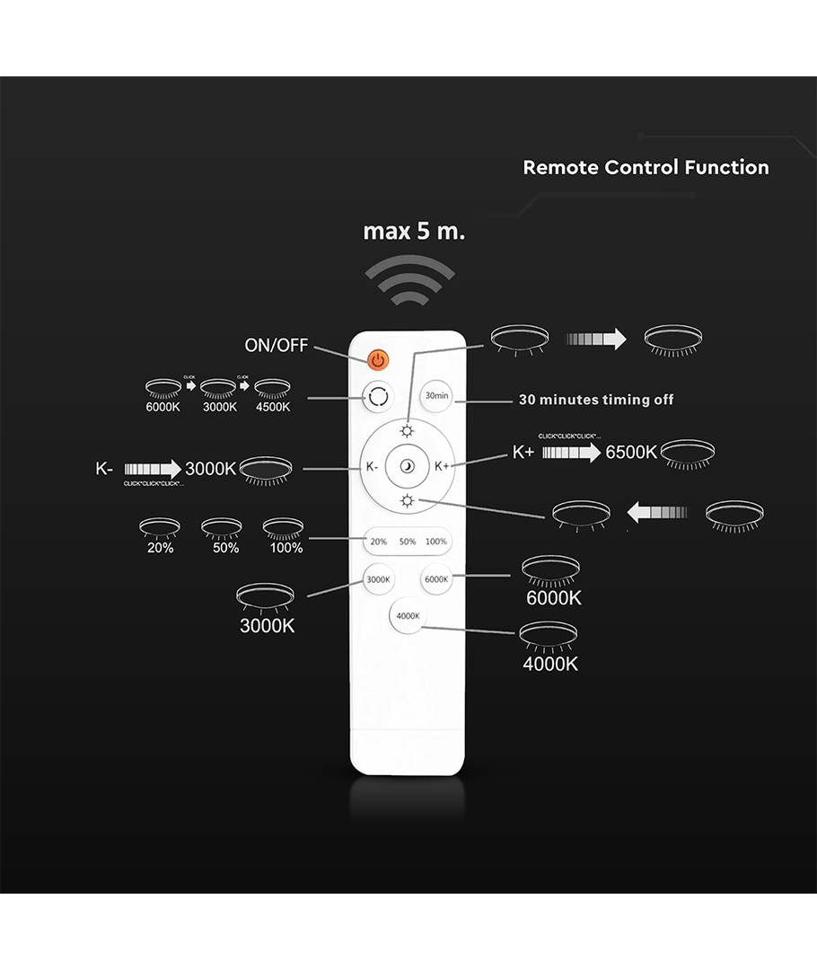 Lampan är utrustad med en smart IR fjärrkontroll, vilket ger dig möjlighet att enkelt justera ljusstyrkan och skapa den perfekta belysningen för alla tillfällen. Denna 3-i-1 design erbjuder flexibilitet och bekvämlighet, vilket gör det enkelt att anpassa miljön efter dina behov.