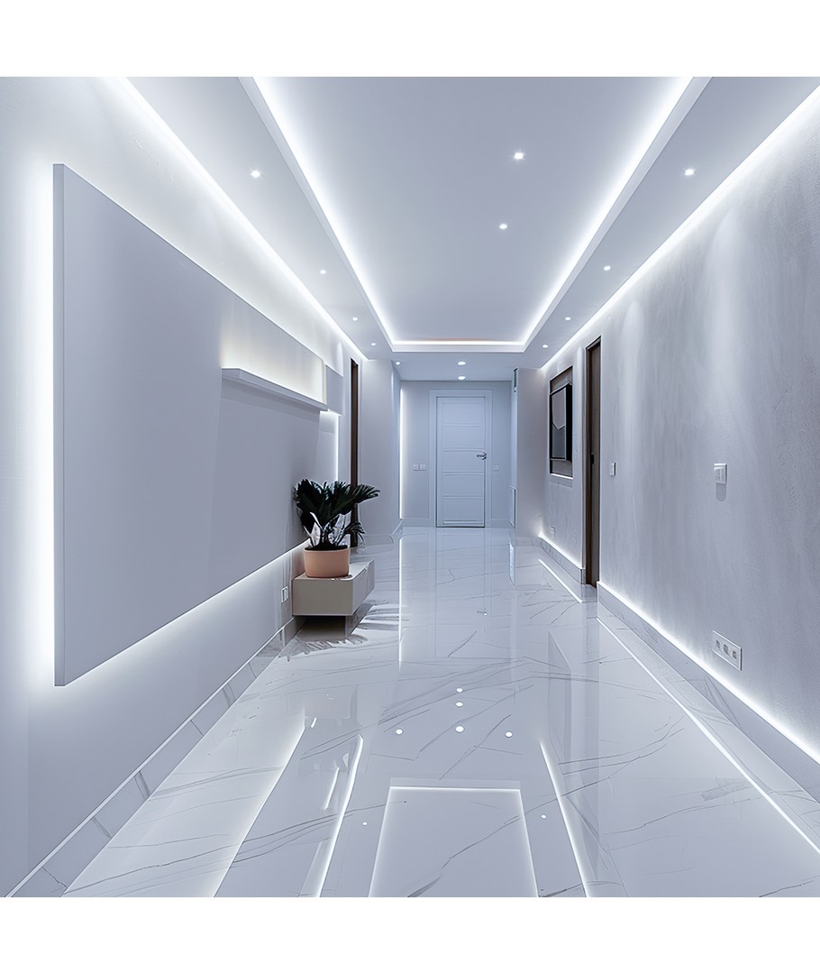 Detta LED ljusbandslist erbjuder en exceptionell ljuskvalitet med ett RA-värde på 90-95, vilket ger ett levande och naturligt ljus som framhäver alla färger på ett vackert sätt. Listan är designad för att möta de flesta belysningsbehov.