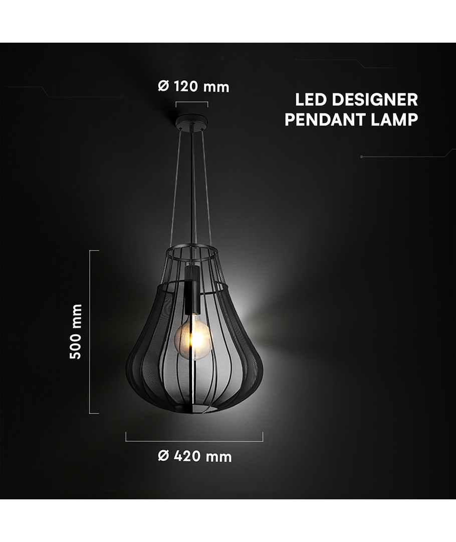 420x500 mm VT-89010 taklampa E27 - dekorativ belysning med en matt svart finish för modern inredning.