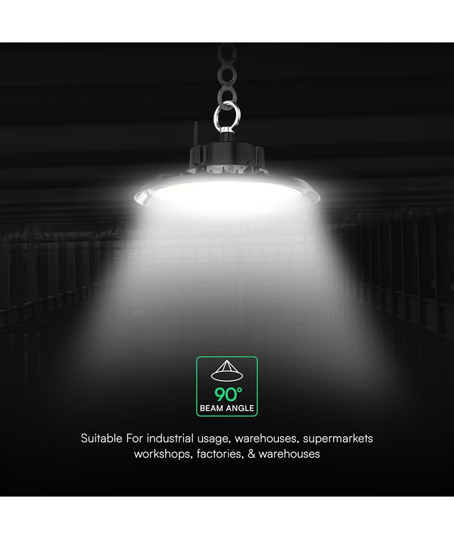 Denna lampa avger en ljusstyrka på imponerande 20200 lumen och har en bred spridning på 90 grader. Detta säkerställer en jämn och effektiv fördelning av ljuset i stora utrymmen.