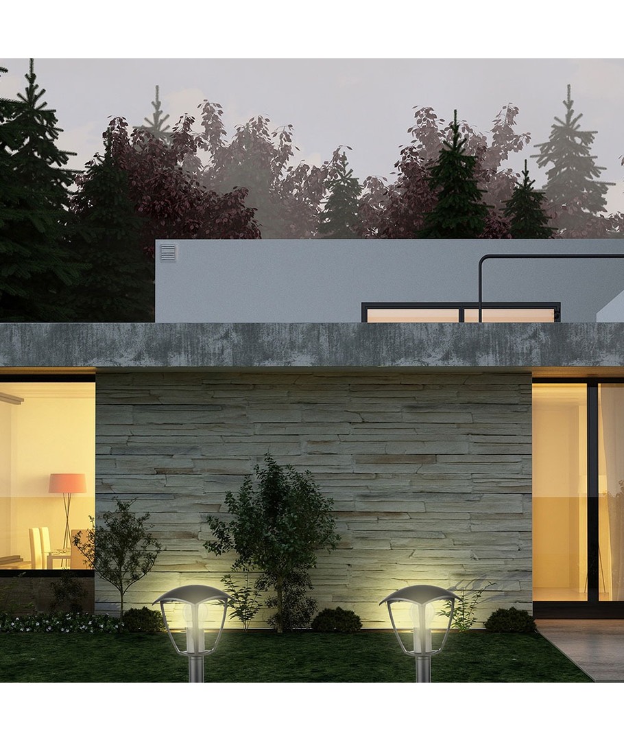 Den här lampan passar utmärkt för att belysa gångvägar, entréeområden eller andra utomhusutrymmen där pålitlig belysning behövs. Dess moderna design bidrar till en elegant och säker ljusmiljö runt ditt hem.