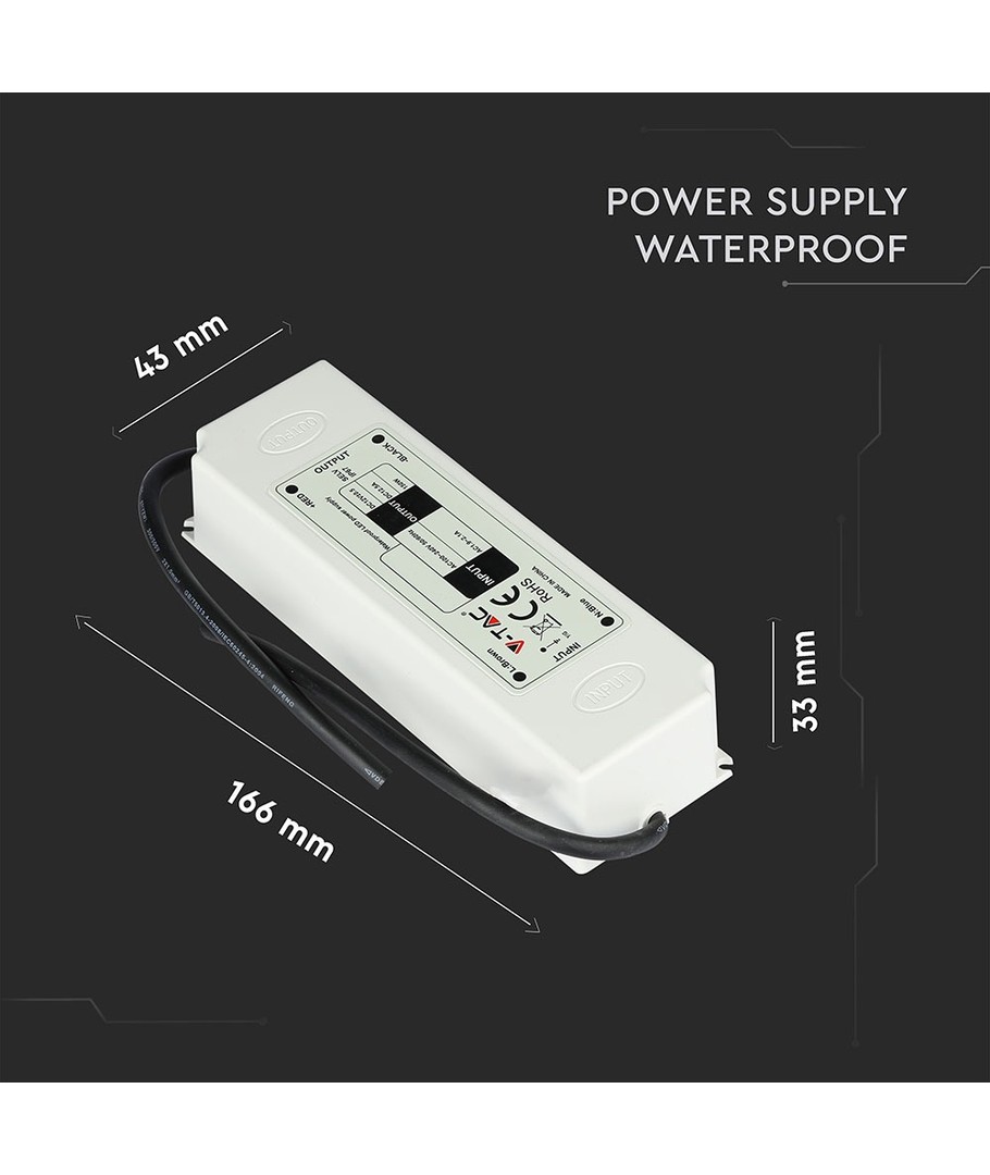 Denna strömförsörjning är vattentät enligt IP67-standard, vilket gör den idealisk för både inomhus- och utomhusbruk. Perfekt för olika applikationer där fukt och damm kan vara närvarande, men håll den borta från att ligga under vatten under längre tider för att säkerställa dess livslängd och effektivitet.