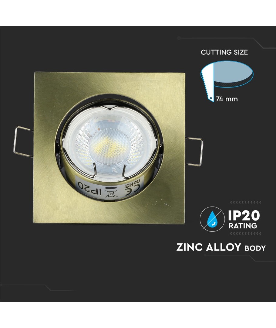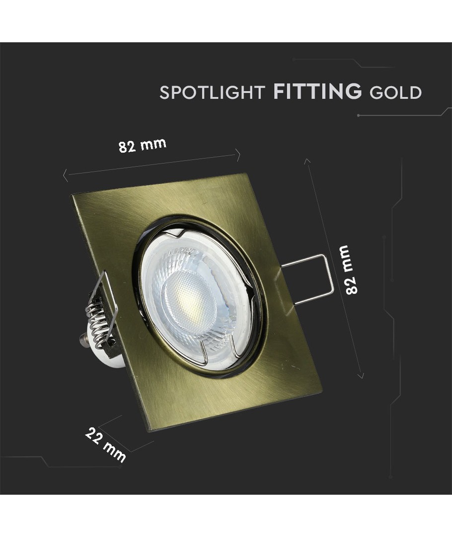 Den fyrkantiga lamphållaren GU10 i Vt-779 serien är ett stilrent tillägg för alla moderna interiörer. Med dess guldfärgade finish tillför den en touch av elegans och förfining till vilket rum som helst.