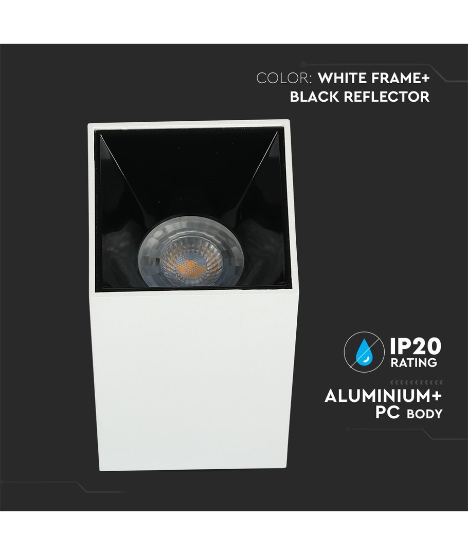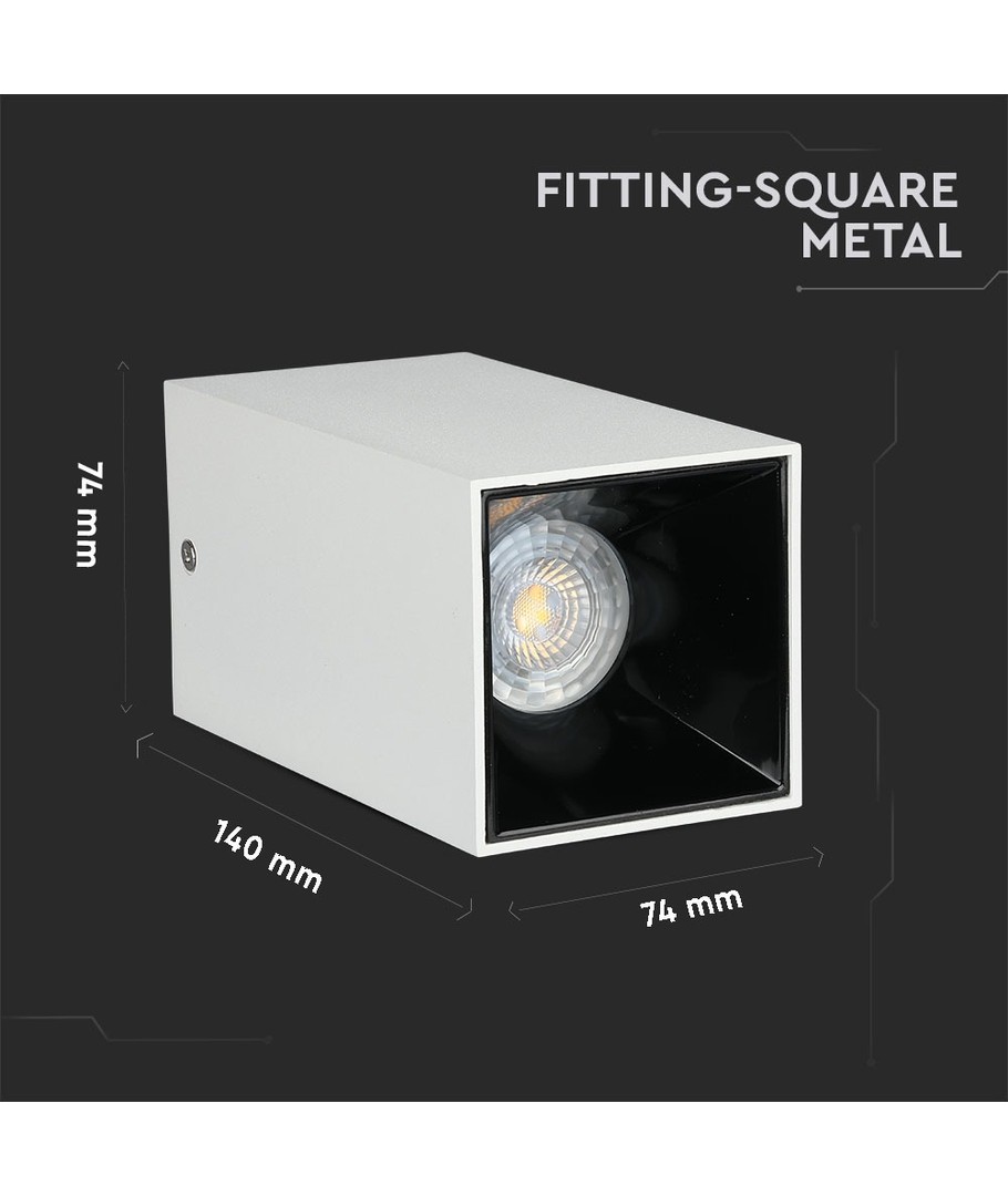 Vt-882 lampa GU10 är en stilfull och modern fyrkantig lampa i vitt och svart design.
