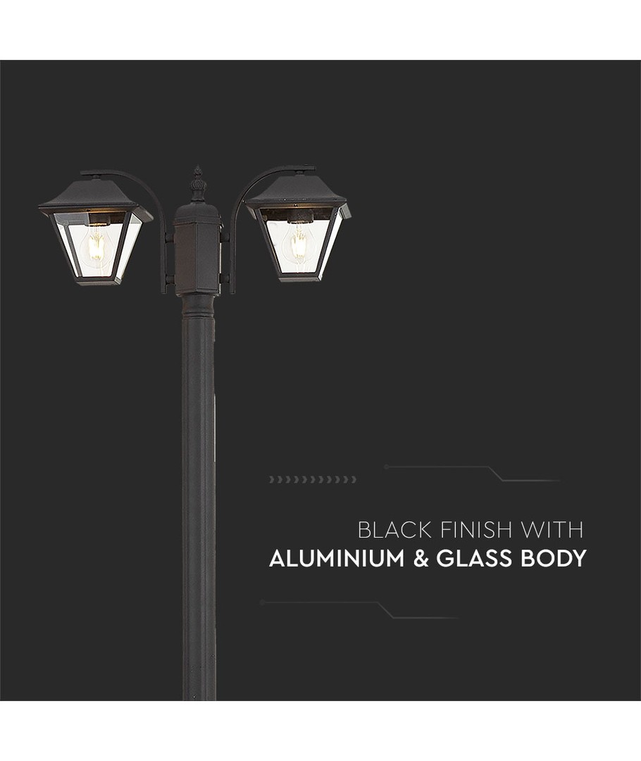 Förvandla din utomhusmiljö med denna stilrena lampstolpe i matt svart design med klart glas. Den är utformad för att ge både estetiska och praktiska fördelar, vilket gör den till ett utmärkt val för uppfarter, trädgårdar och uteplatser.