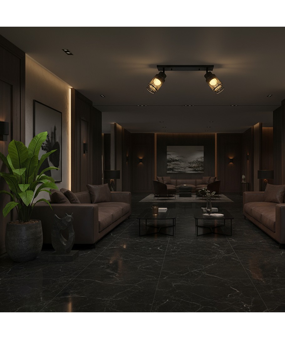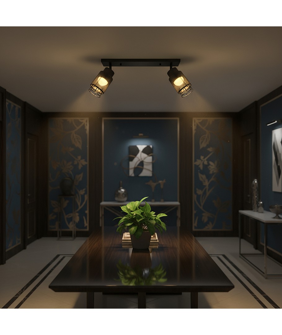 Denna taklampa kombinerar stil och funktionalitet för att passa in i alla moderna hem. Med sin matt svarta finish och dekorativa design blir den ett utmärkt tillskott till ditt tak.