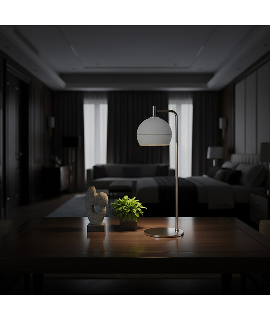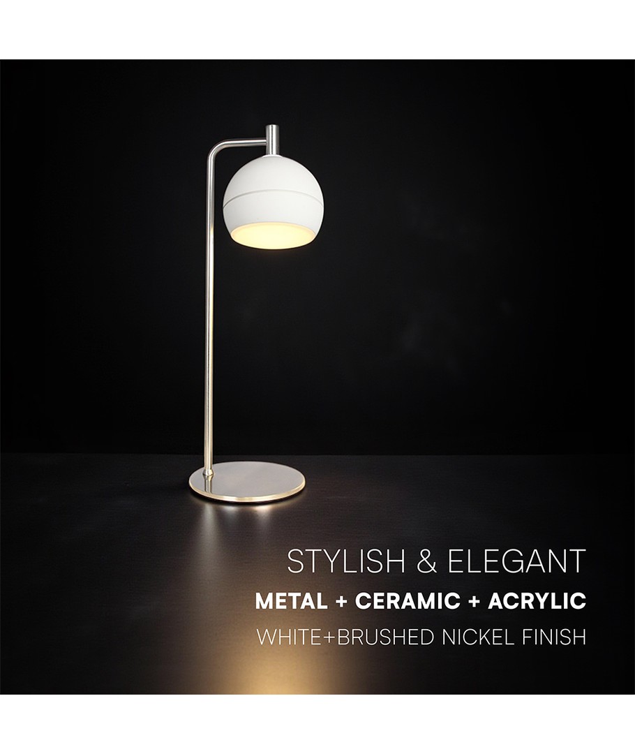 Den här bordslampan säkerställer en jämn fördelning av ljuset tack vare sin breda spridningsvinkel, medan den höga ljuskvaliteten framhäver färger på ett naturligt och vackert sätt. Oavsett om du placerar den i vardagsrummet, sovrummet eller kontoret, kommer dess eleganta design i borstad nickel och vit att passa in i de flesta inredningar. Belys ditt hem med stil och njut av det harmoniska sken som lampan erbjuder.