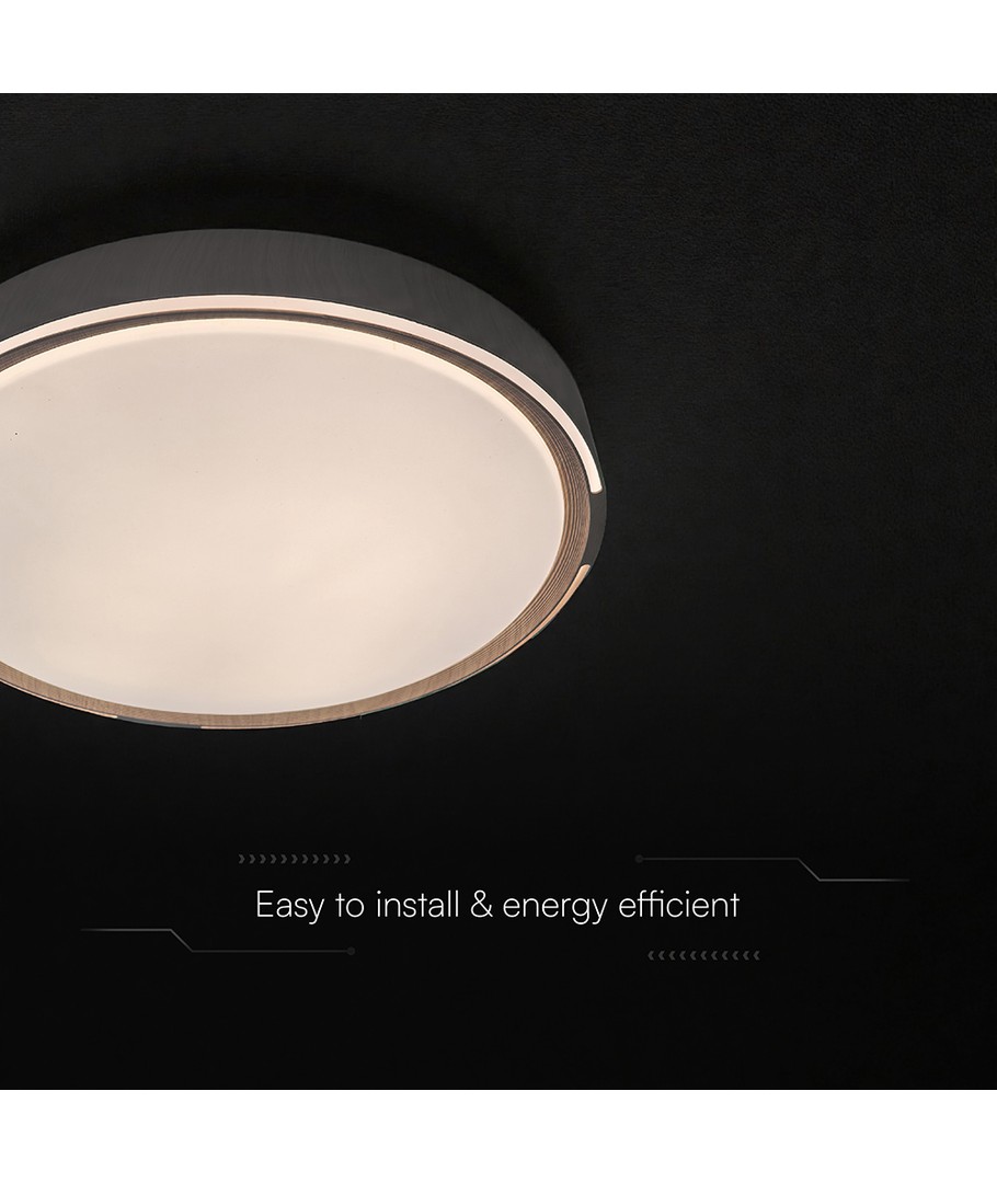 Ny V-Tac 30W/60W/30W LED-taklampa med trälook - 3-i-1 CCT, dimbar, fjärrkontroll, inkl. ljuskälla v-tac Expandera