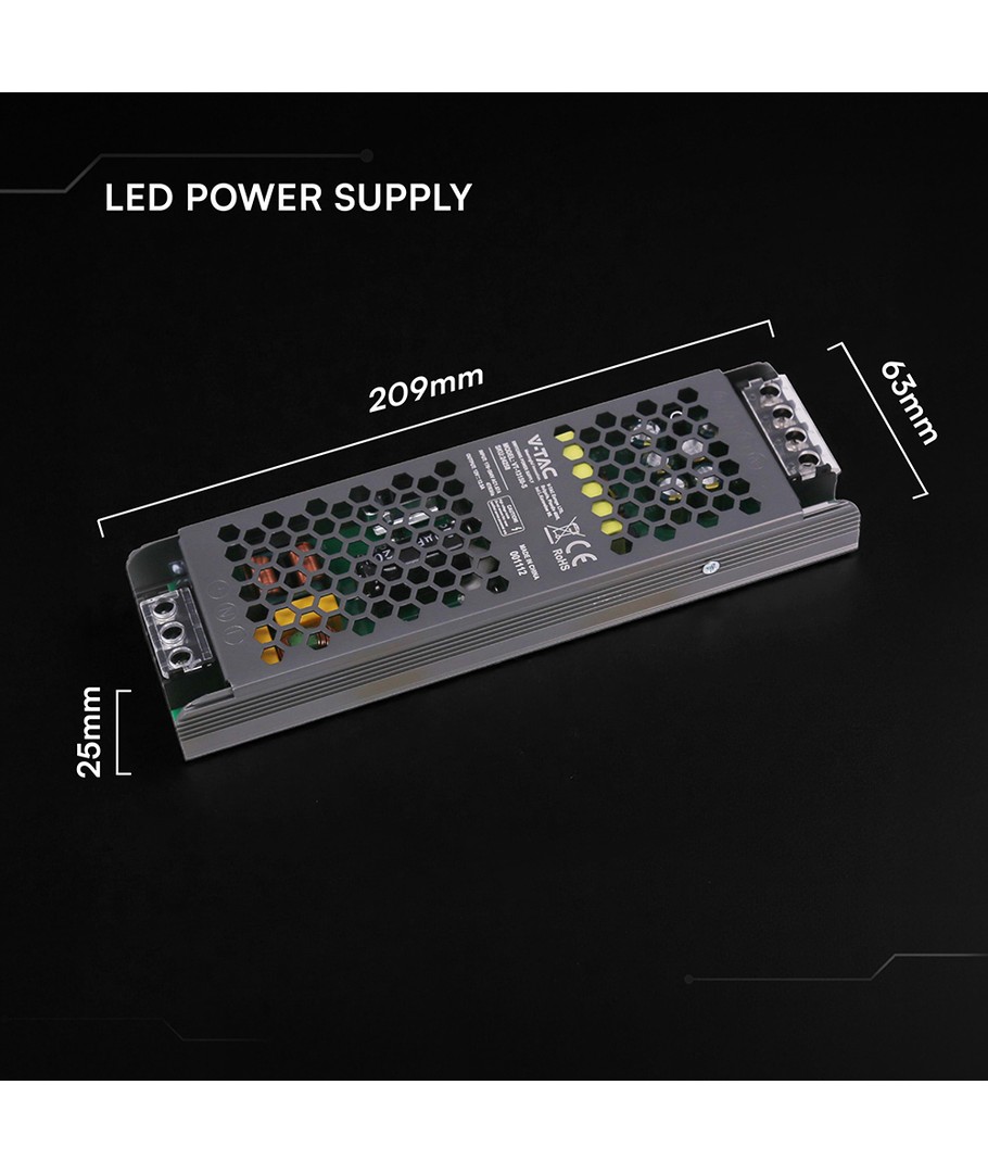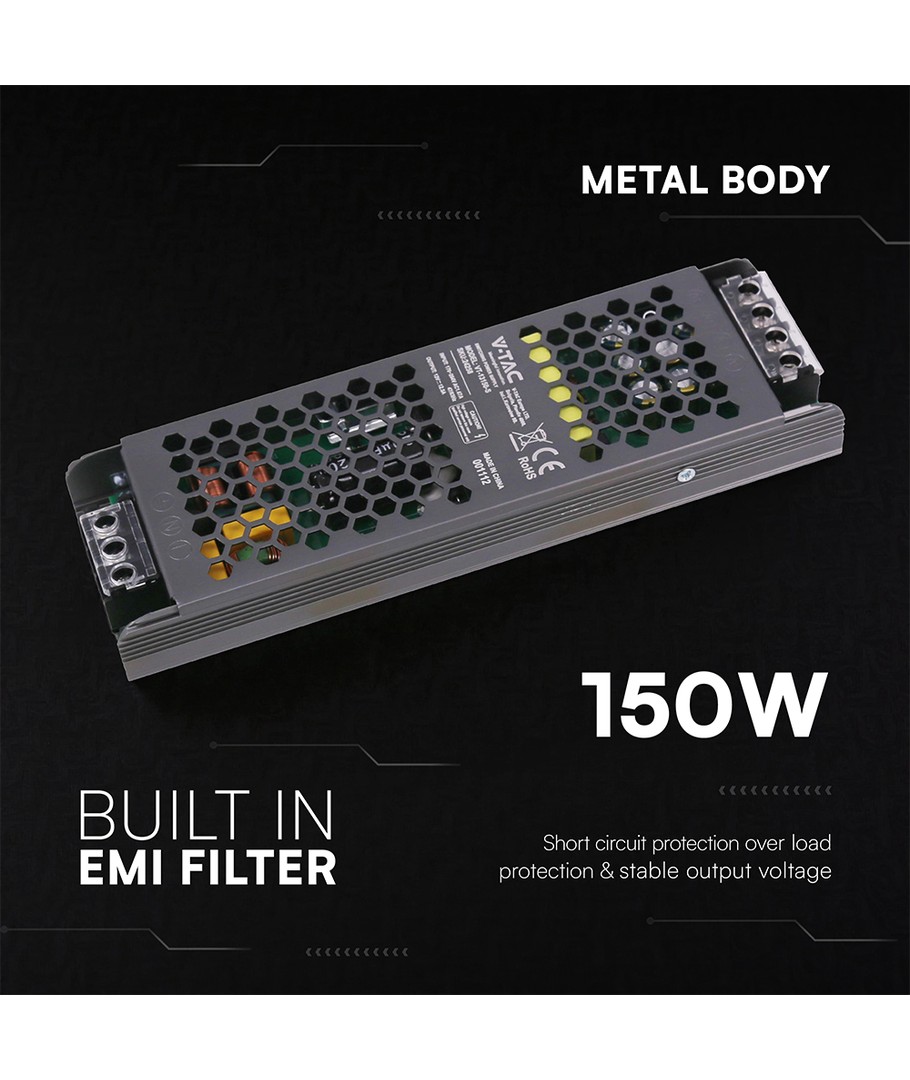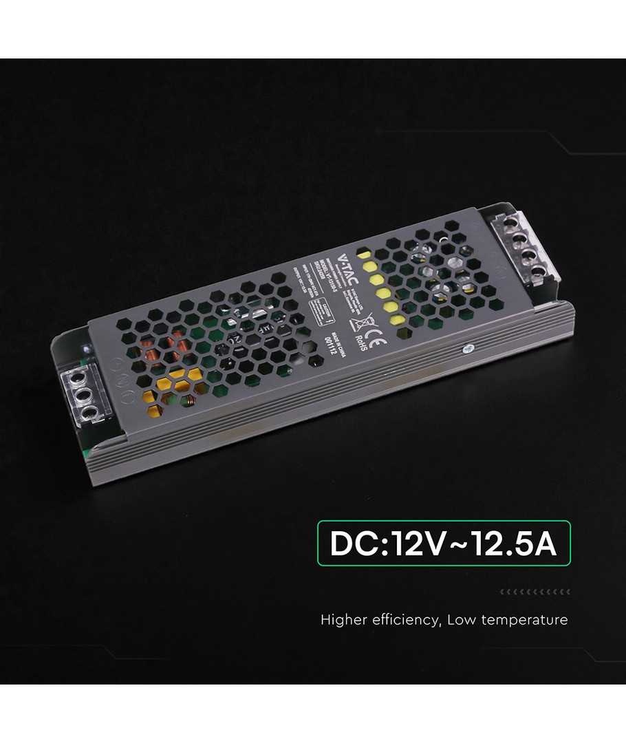 Ny 150W / 12V DC transformator för LED-strips - 12.5A, IP20, Slim design V-TAC Expandera