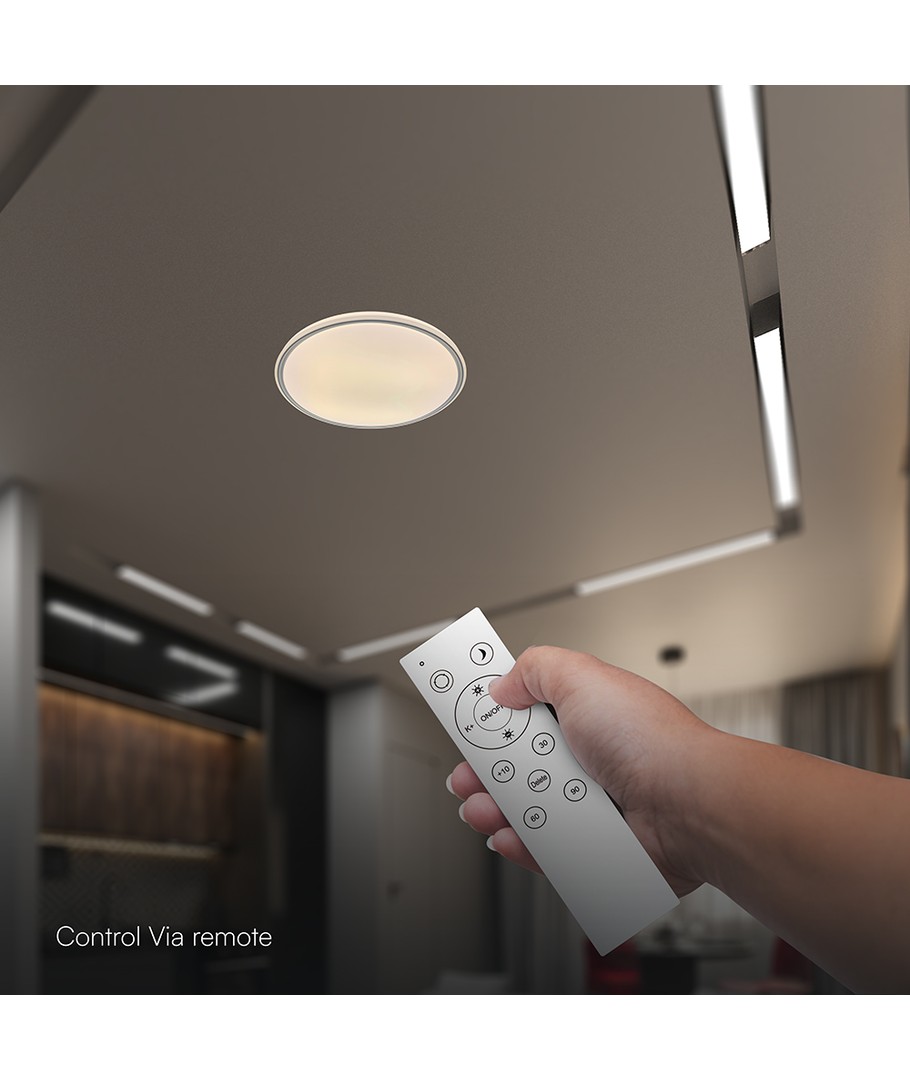 V-Tac LED taklampa med fjärrkontroll kombinerar funktionalitet och stil i en enkel design.