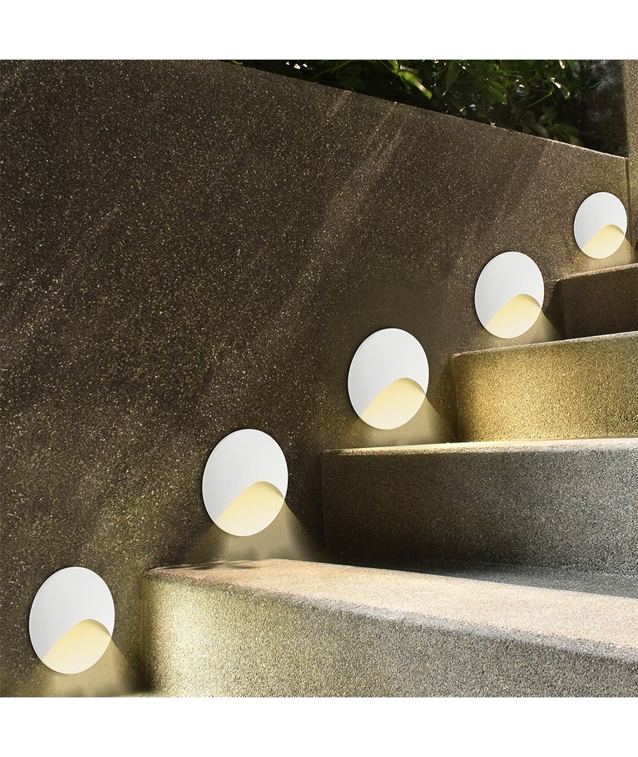 3W LED infälld spotlight designad för trappbelysning med ett stilrent, runt utseende i vit aluminium och hög hållbarhet.