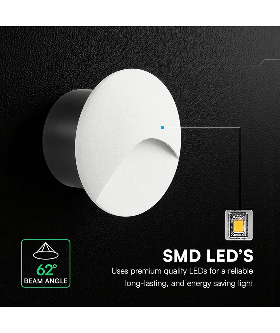 Ny 3W LED-trappspot för inbyggnad - Rund, vit, aluminium, IP65, 3000K, inkl. ljuskälla V-TAC Expandera