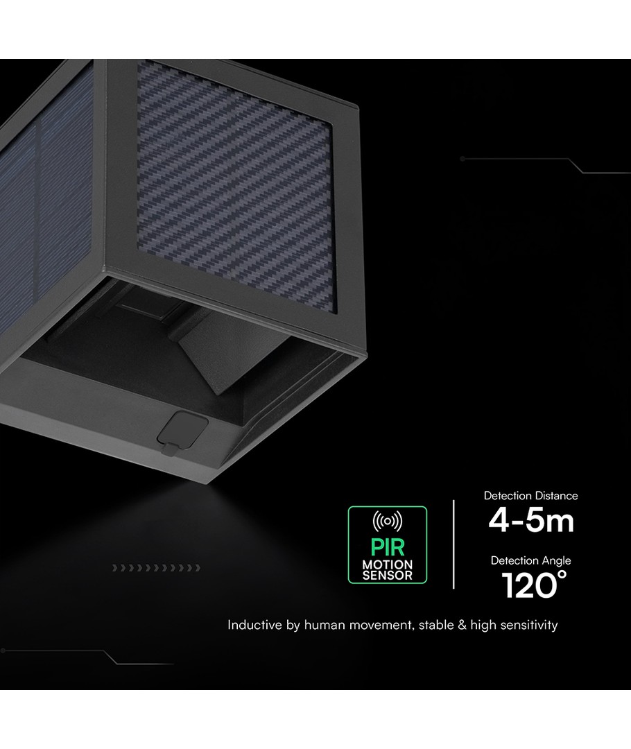 Ny V-Tac 9W Solara vägglampa med sensor - IP65, svart, 3-i-1 CCT, solcell, PIR-sensor v-tac Expandera