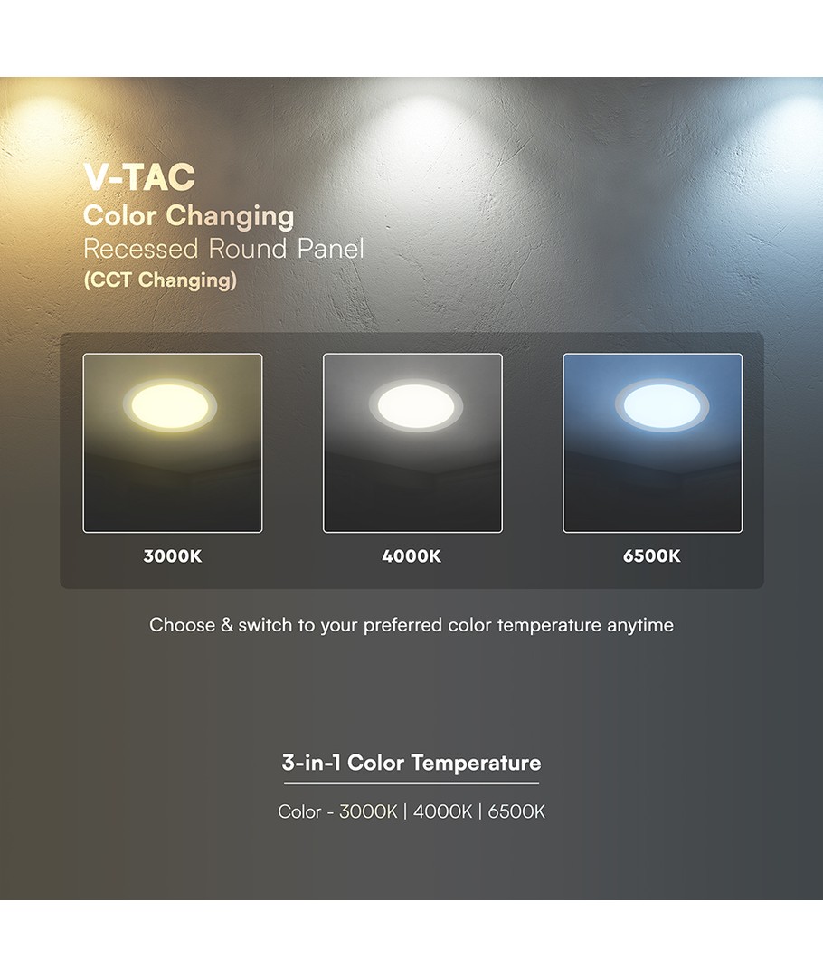 Ny V-Tac 6W Ø10,6cm Backlit LED-panel för inbyggnad - 3-i-1 CCT, CREE-chip, 6 års garanti, rund v-tac Expandera