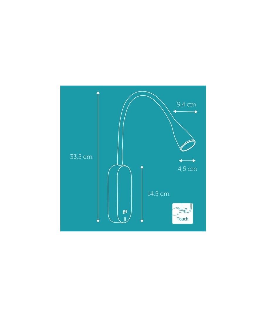 Med den inbyggda touch dimmer-funktionen kan du enkelt justera ljusstyrkan efter dina önskemål. Detta är perfekt för olika aktiviteter, från läsning till avkoppling. Den integrerade USB-porten är en praktisk funktion som gör det möjligt att ladda dina elektroniska enheter direkt från lampan, vilket sparar värdefull utrymme på nattduksbordet eller arbetsbordet.