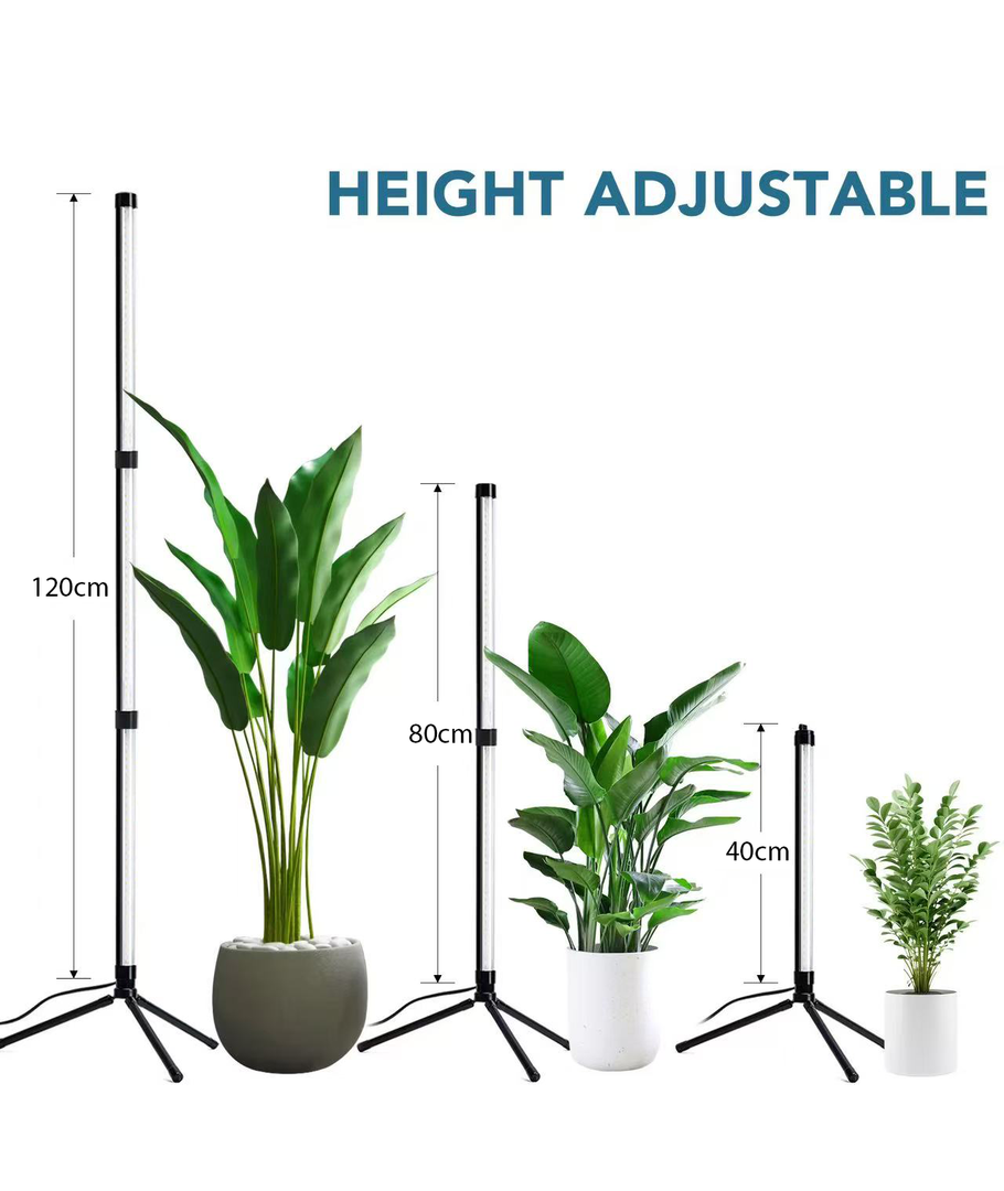 Utformad för att passa in i alla miljöer, är stativet både stilrent och praktiskt. Den justerbara funktionen gör det enkelt att ändra ljusets höjd och position, så att du kan anpassa det efter dina växters olika höjd och placering.