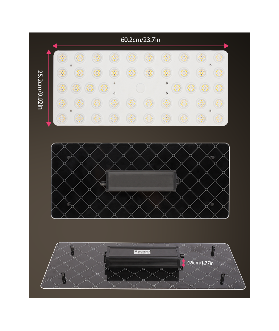 Kraftfull fullspektrum växtlampa, utan fläkt, inbyggd dimmer