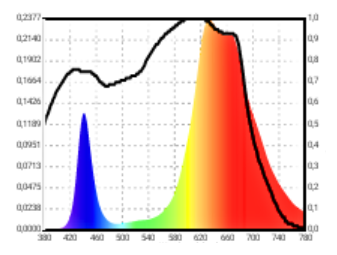 Växter använder blått och rött ljus för tillväxt. Det är därför viktigt att man tittar på fördelningen av rött och blått i ljuset, eftersom detta har avgörande betydelse för växtlampans effekt.