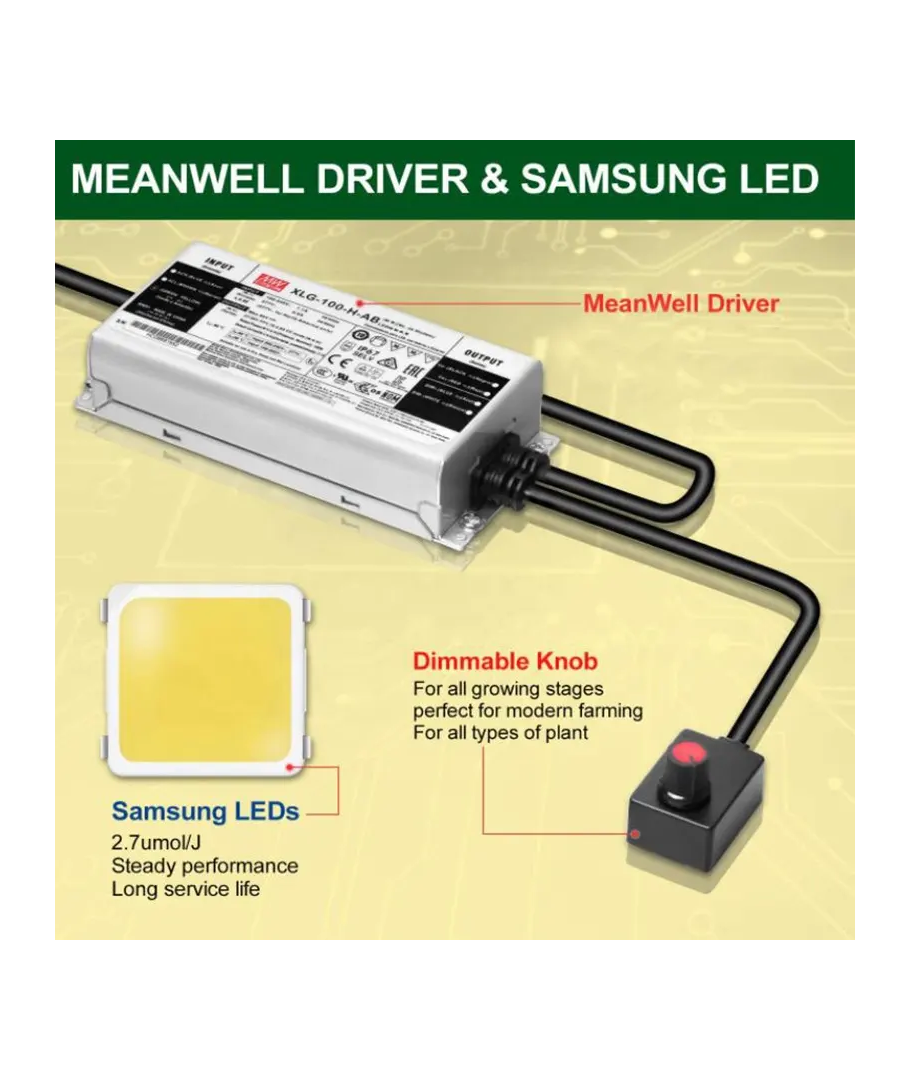 Kraftfull fullspektrum växtlampa, utan fläkt, inbyggd dimmer