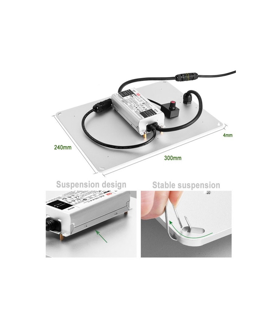 Inkl. upphängning, fullt spektrum, utan fläkt, justerbar ljusstyrka, flimmerfri, IP65