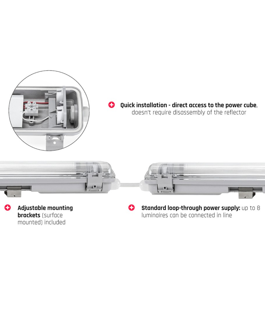 Vattentät armatur för 2 x 150 cm LED-rör.