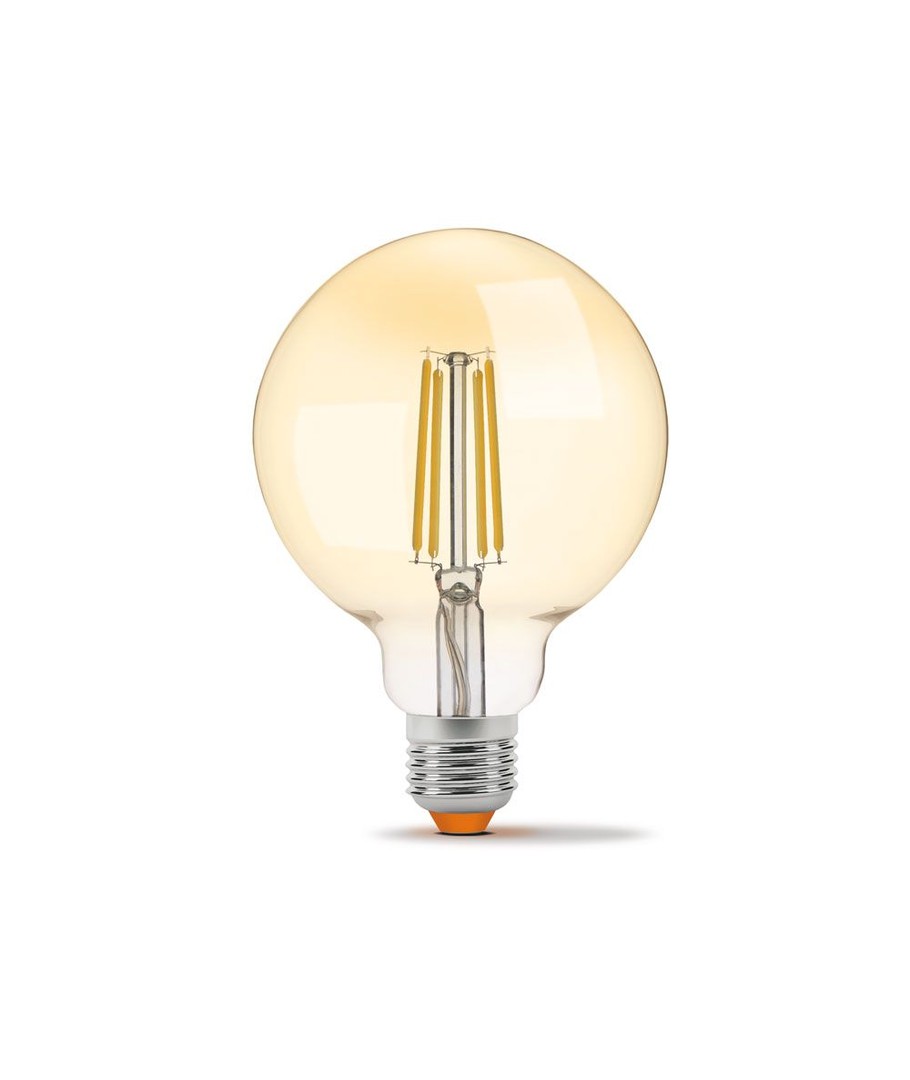 Den perfekta kombinationen av modern teknik och traditionell estetik erbjuder denna G95 LED-lampa. Designad med en glödtråd och en bärnstensfärgad finish, ger den ett extra varmvit ljus som efterliknar en gammaldags glödtrådslampa. Upplev en dimmbar ljuskälla som förhöjer stämningen i varje rum.