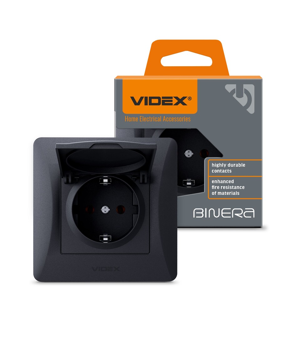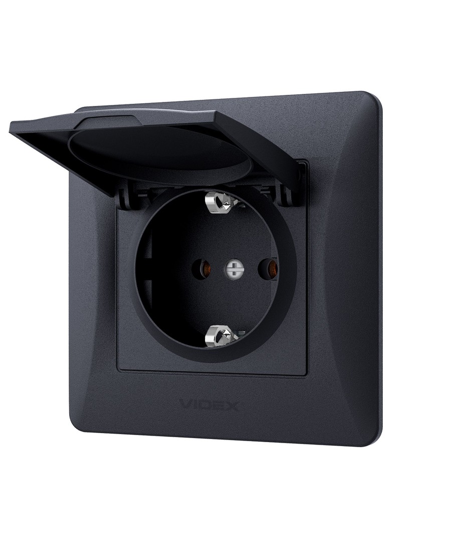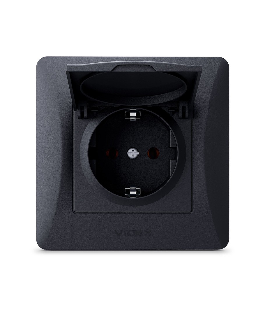 Schuko-kontakt - enkel, med lock, svart Videx Expandera