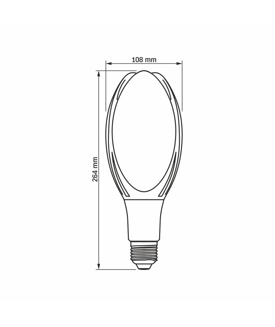 Med dess hållbara konstruktion i storleken 108 x 264 x 108 mm, och en standardkoppling för 230V, är denna LED-lampa en pålitlig energibesparande lösning som håller över tid.