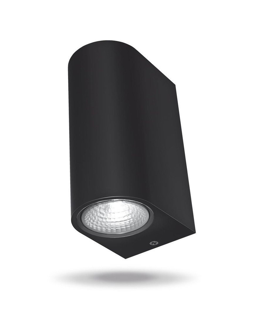 Med en solid konstruktion och IP54-klassning, är denna armatur robust nog för att motstå fuktig luft och vattenstänk, vilket gör den idealisk för användning på fasader i olika klimatförhållanden. Den stilrena svarta designen ger ett modernt och elegant utseende som smälter in väl i alla exteriörer.