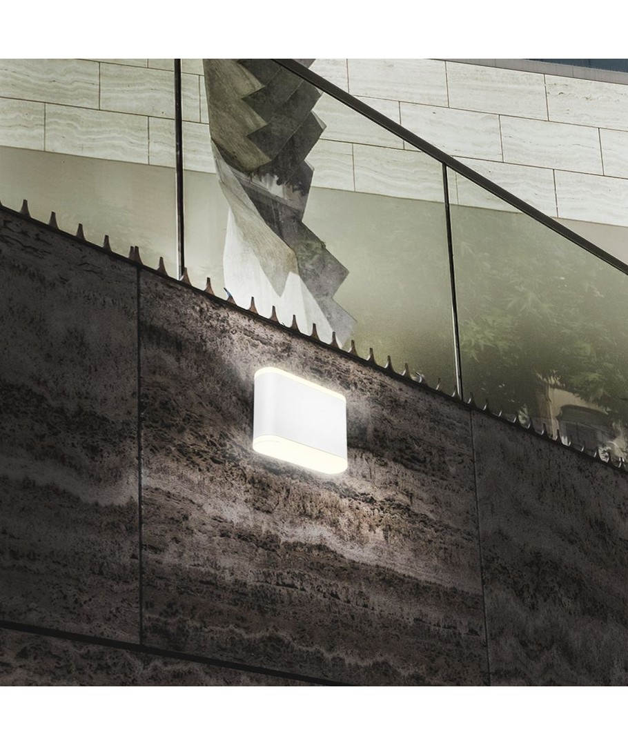 Med dimensionerna 106 x 115 x 30 mm och en vit finish, passar denna dubbelsidiga armatur perfekt på de flesta fasader. Den har en IP54-klassificering som gör den tålig mot fuktig luft och vattenstänk, vilket gör den idealisk för utomhusbruk.