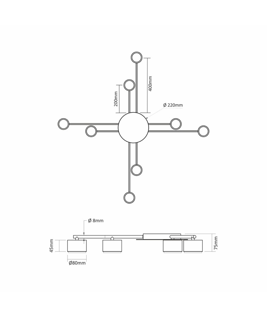 Viktiga Egenskaper:Denna armatur har utformats med användarvänlighet och flexibilitet i åtanke. Du har friheten att använda upp till åtta ljuskällor, vilket gör det möjligt att anpassa belysningen perfekt för utrymmets storlek och funktion.