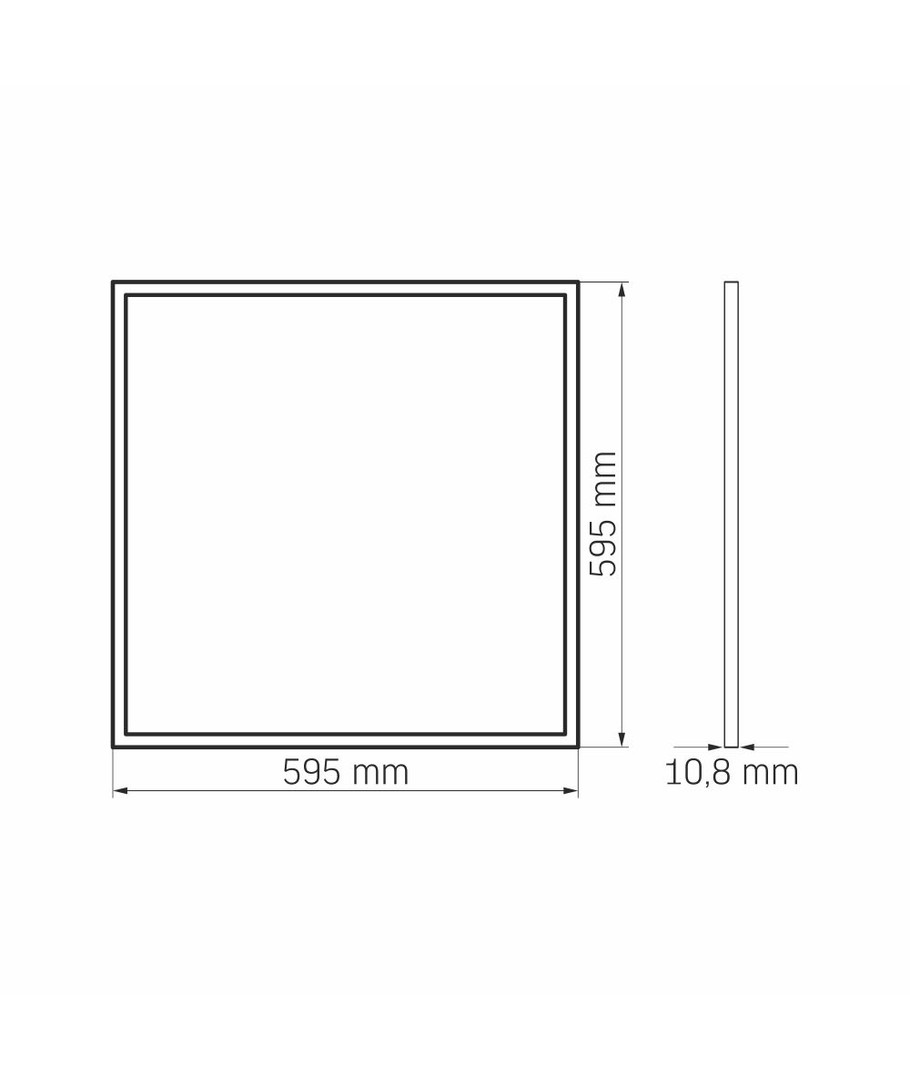 Panelens mått är 591 x 591 x 11 mm och den levereras med en integrerad ljuskälla. Den har ett IP20-klassificering, vilket betyder att den inte är vattentät och bör används inomhus.