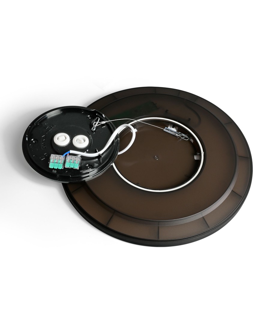 Den eleganta svarta finishen och den dekorativa bakgrundsbelysningen ger denna taklampa en unik charm, vilket gör att den passar in i de flesta inredningsstilar. Det är således inte bara en praktisk ljuskälla utan även ett stilfullt tillskott till rummet.