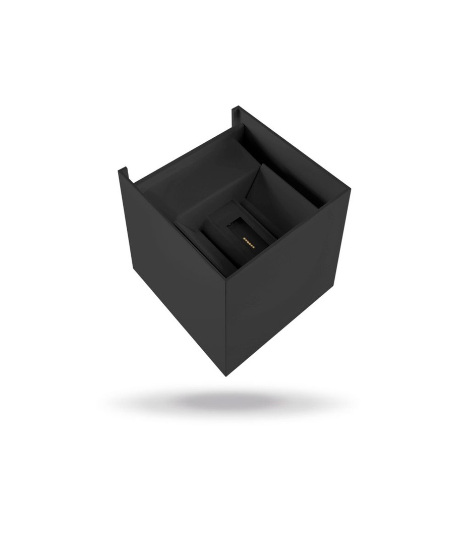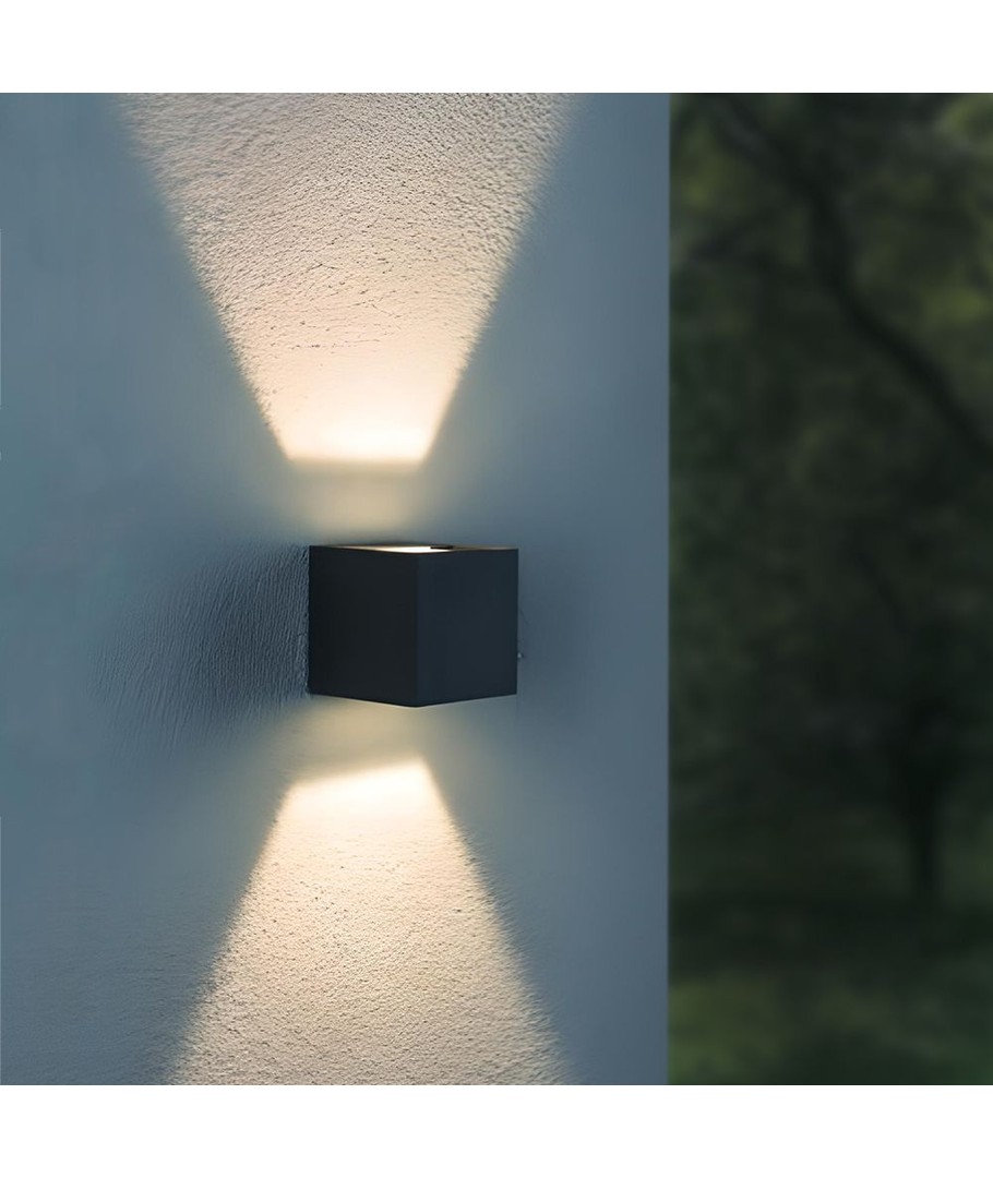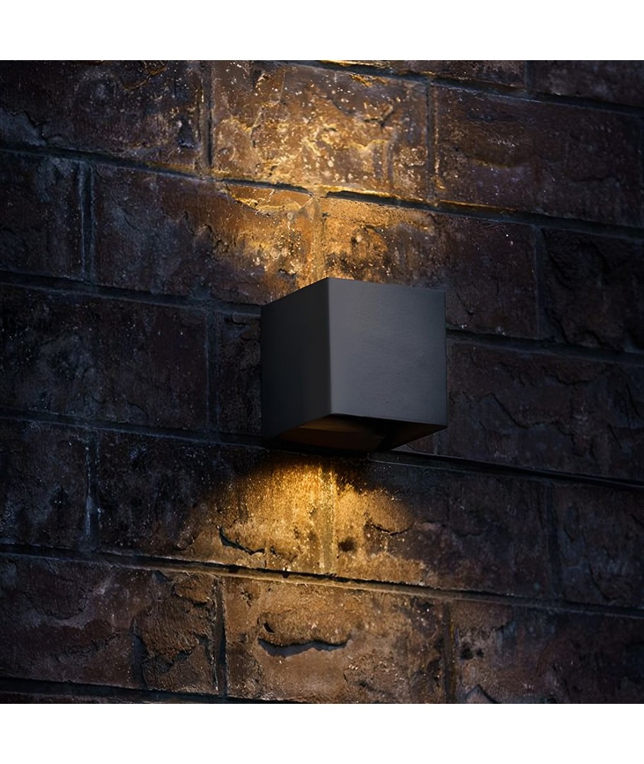 Med en robust konstruktion och IP54-klassning, står armaturen emot fukt och vattenstänk, vilket gör den idealisk för utomhusbruk. Armaturen integrerar ljuskällan och är modernt designad i en elegant svart färg som passar de flesta fasader.