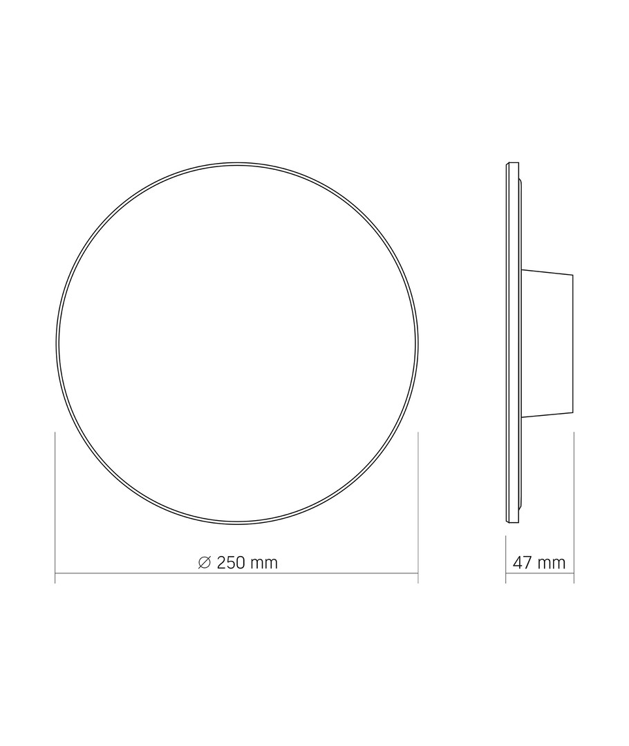 Med dimensioner på 250 x 250 x 47 mm, är lampan praktiskt utformad för diskret och stilren montering. Den har en hög IP65-klassificering, vilket innebär att den tål vattenstänk och regn, vilket gör den idealisk för utomhusbruk. Lampan kommer med en integrerad ljuskälla, vilket gör installation och användning enkel och bekymmersfri.