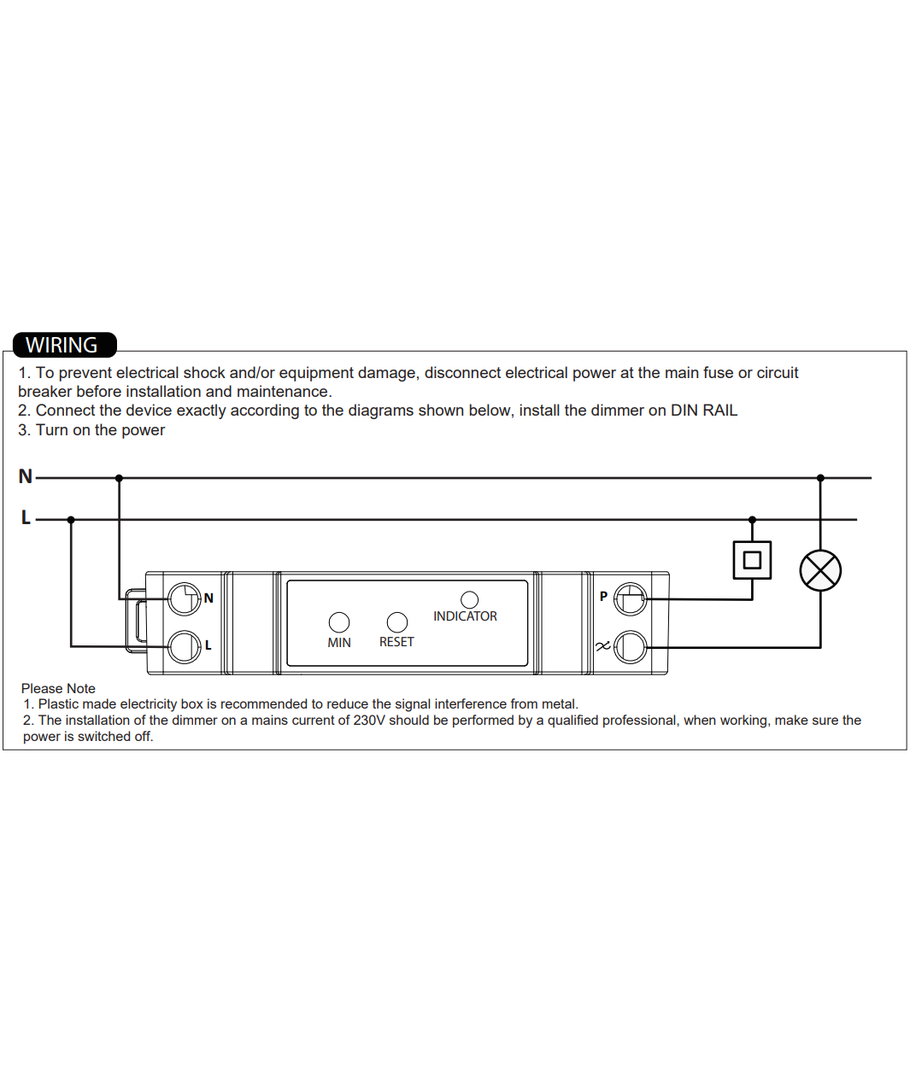 Den kompakta storleken på dimmeren innebär att den bara fyller en modul i ditt elektriska kort och den passar direkt på en dinskena. Det gör installationen både enkel och rymdsparande. Dessutom kan den också dimmas med pushdämpning via en fjäderkontakt om så önskas.